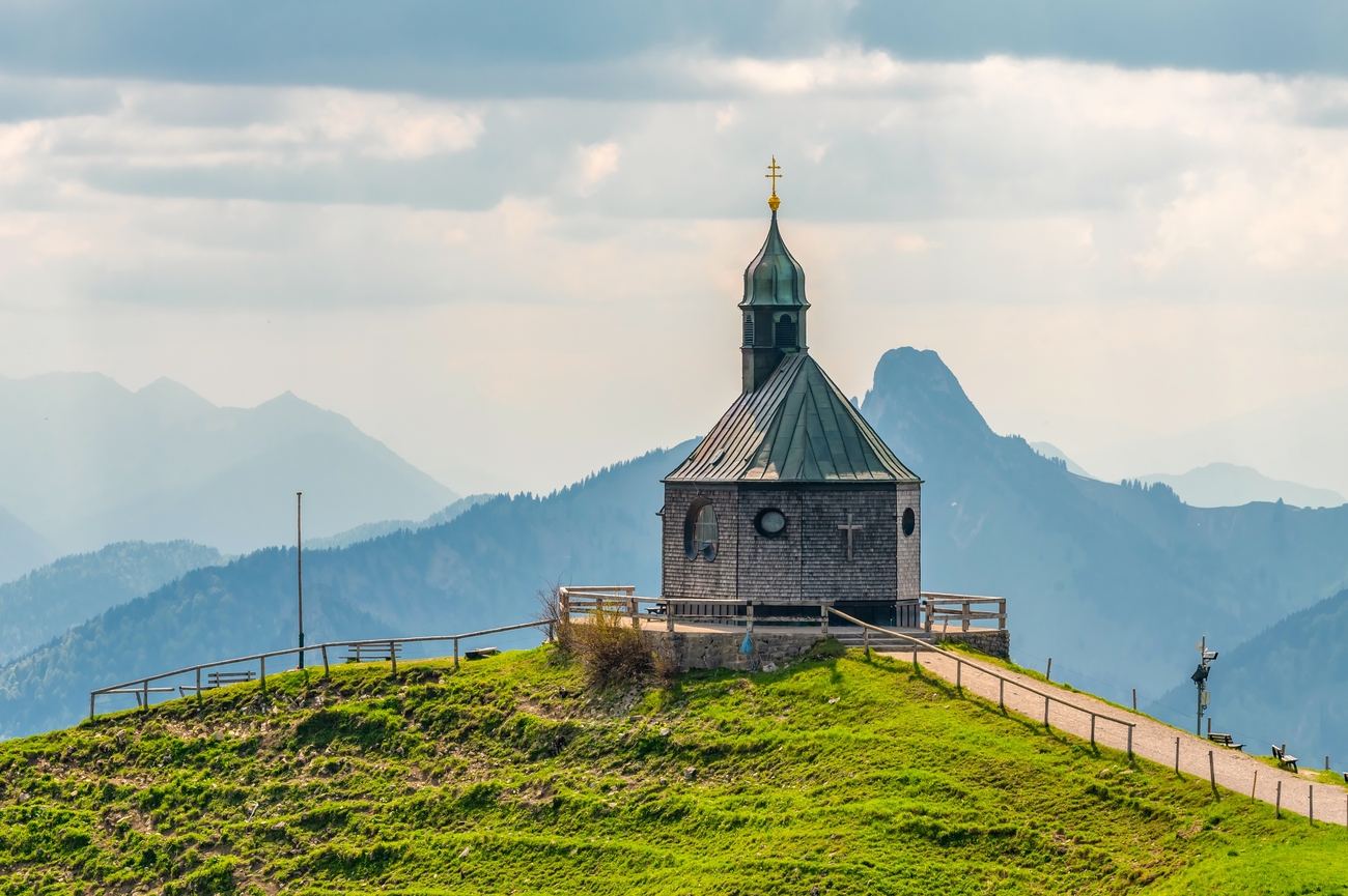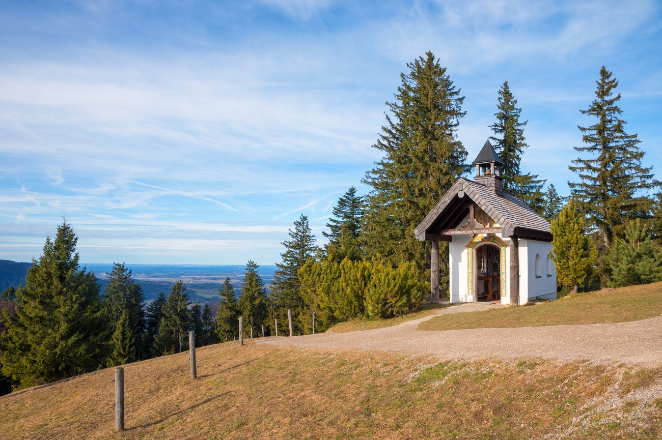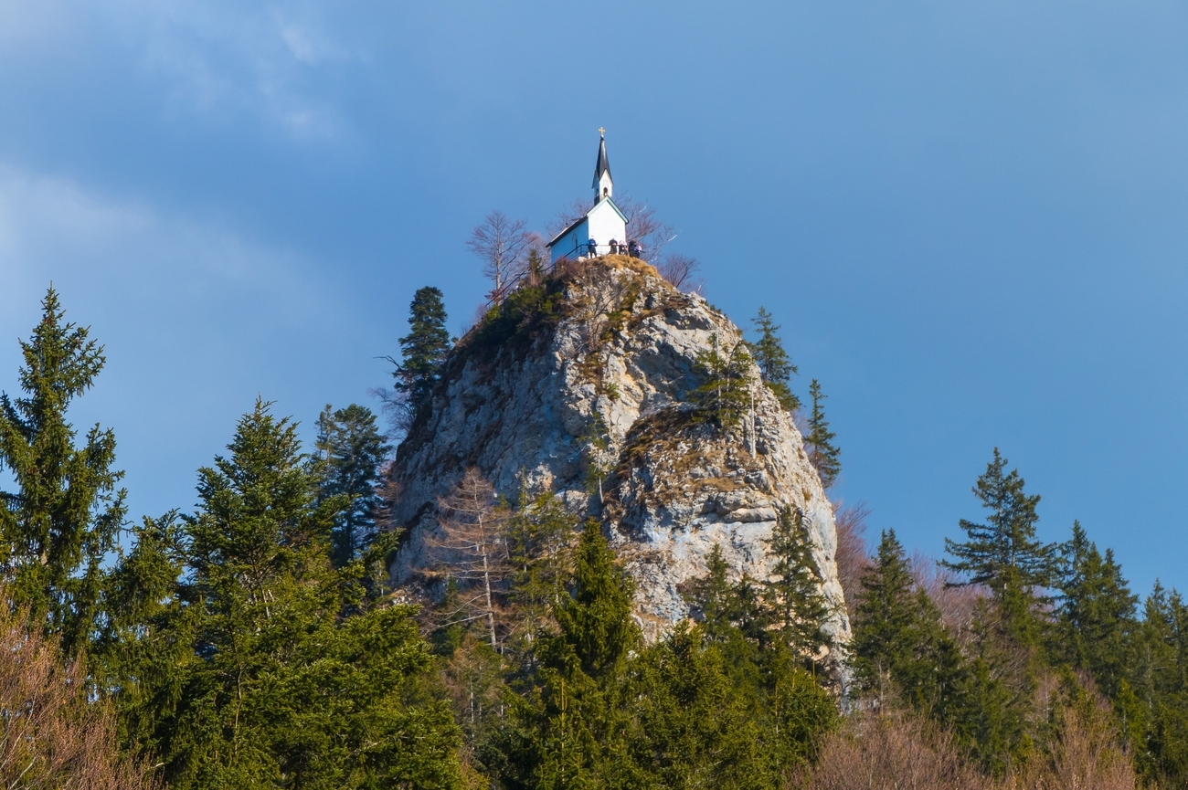 Kapelle Heilig Kreuz is a traditional alpine chapel, modest in scale yet deeply atmospheric. Its whitewashed façade, compact structure and classic Bavarian onion dome reflect the region’s devotional heritage. Chapels like this were often built by local farming communities as acts of faith and gratitude, anchoring spiritual life to the landscape itself. Inside, the wooden interior is simple and warm, focused around a small altar that feels personal rather than grand.