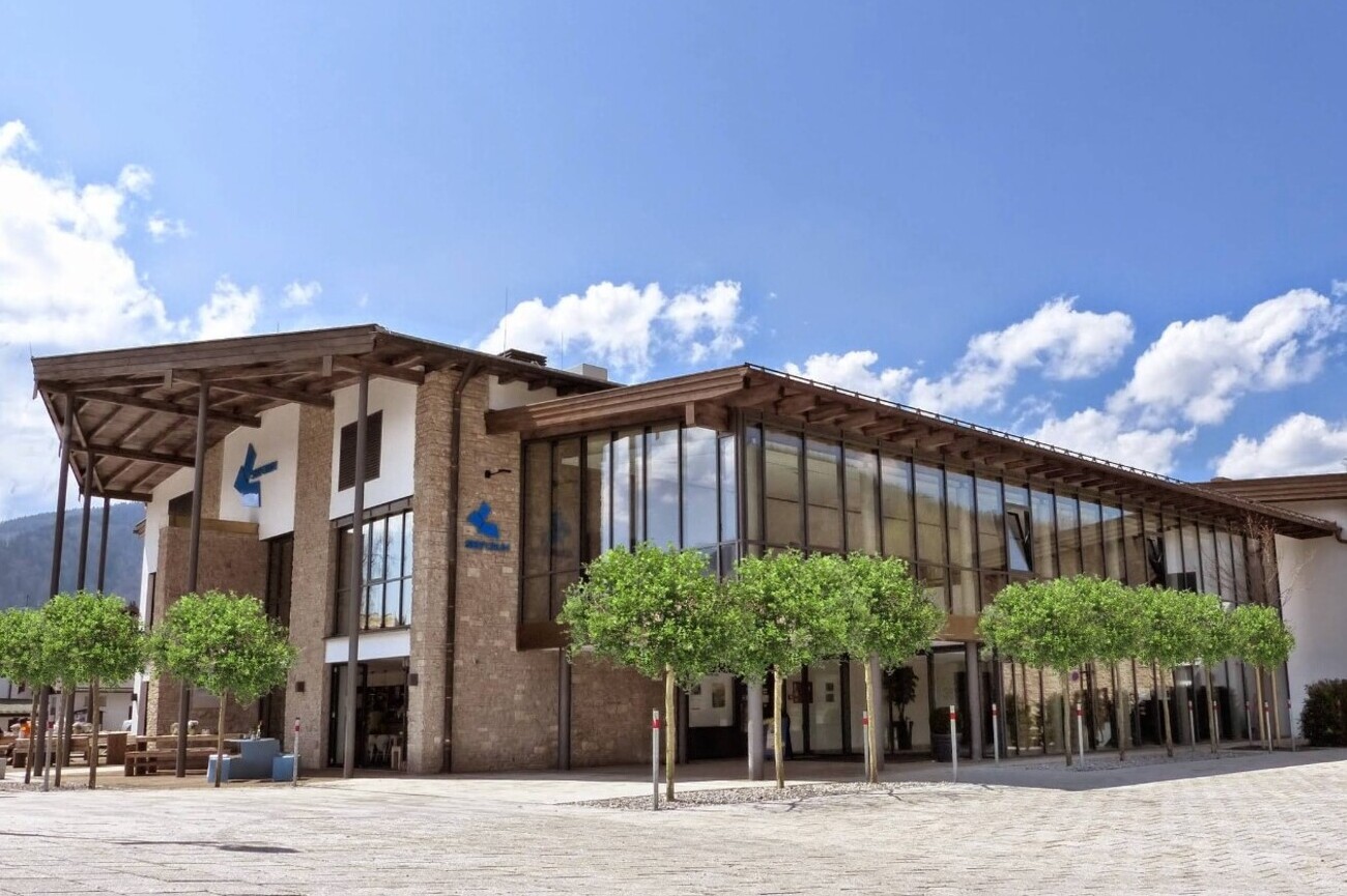 From central Kreuth, it’s a quick 5-minute drive toward the village of Kreuth-Oberhof, where the modern wooden-and-glass building of Naturkäserei TegernseerLand sits surrounded by open fields and mountain views. The setting is fitting with pastures nearby, peaks in the background and the quiet sense that what’s produced here starts right outside the door.