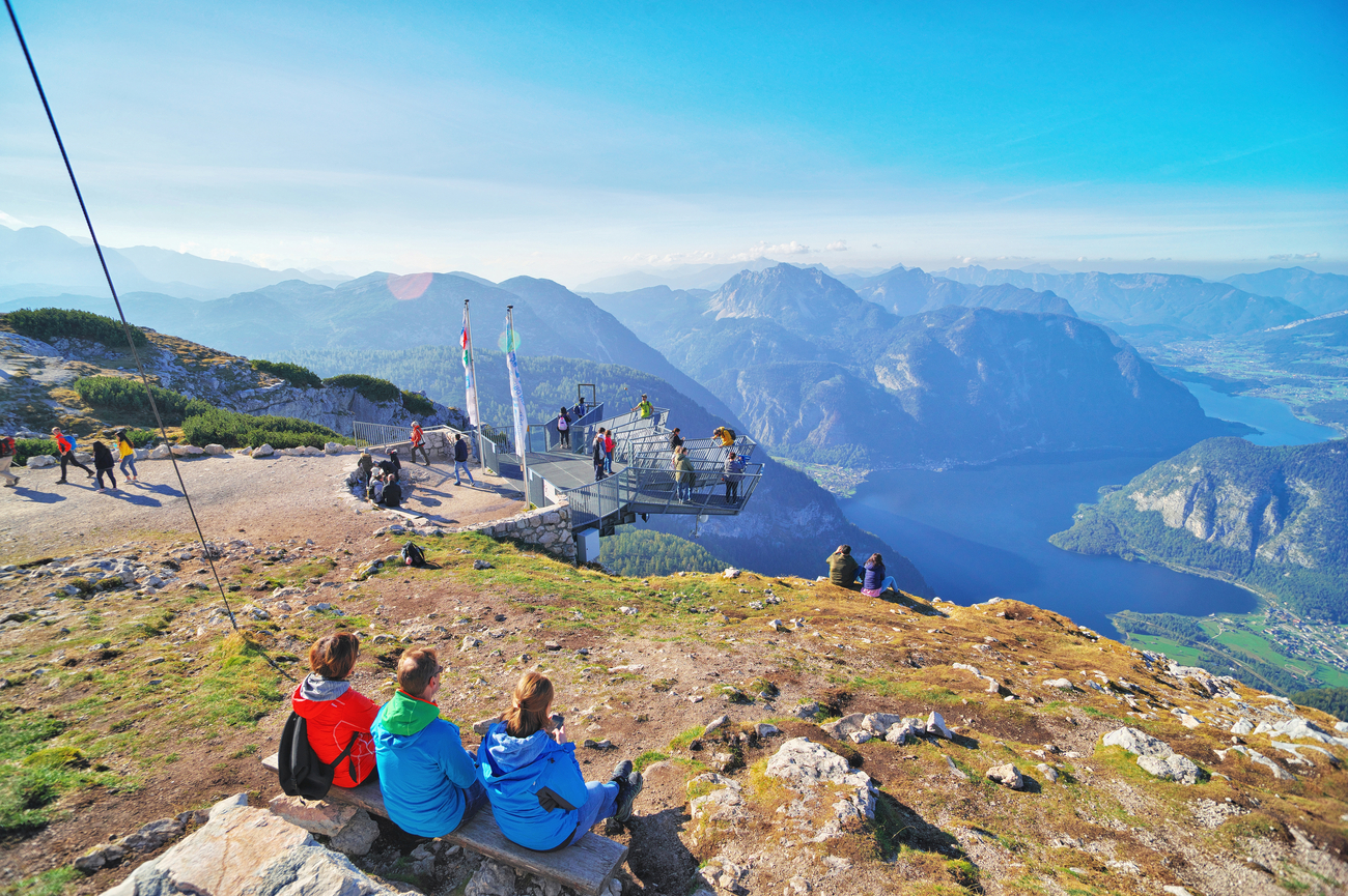 Un último ascenso a las tierras altas del Dachstein lleva el día a su pausa más dramática. La plataforma mirador 5 Fingers pondrá el broche final a tu tercer día en la región.