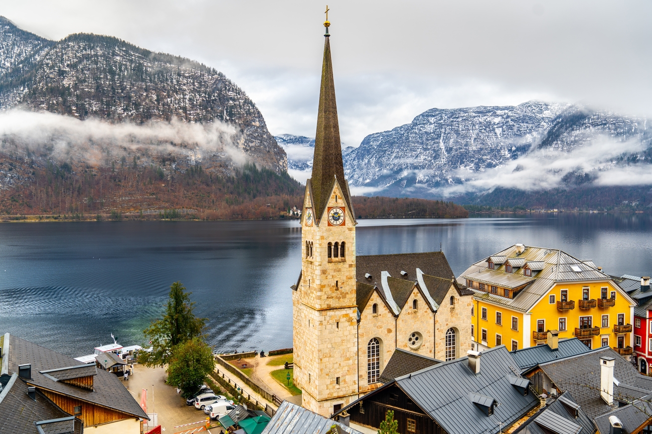 Un corto paseo desde el osario lleva el itinerario al icono más reconocible de Hallstatt, colocado justo donde la tierra y el lago acuerdan compartir espacio.