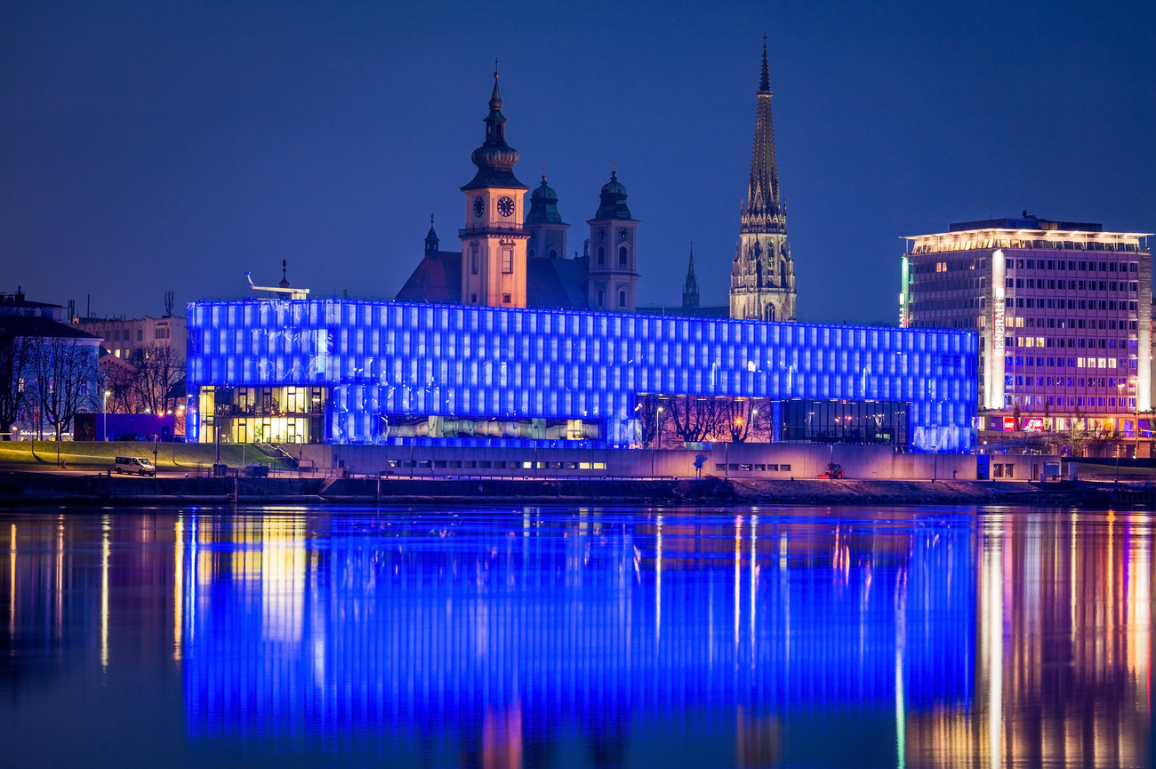 El Ars Electronica Center representa el lado más visionario de Linz. Desde su apertura en 1996, este «Museo del Futuro» explora cómo la tecnología, la ciencia y el arte chocan, colaboran y, a veces, discrepan. Inteligencia artificial, robótica, biología digital y medios interactivos ocupan el centro del escenario, no como teorías lejanas, sino como experiencias diseñadas para ser probadas y cuestionadas. La arquitectura refuerza el mensaje. Transparente de día y con un brillo azul eléctrico al caer la noche, el edificio convierte la innovación en un espectáculo público junto al río.