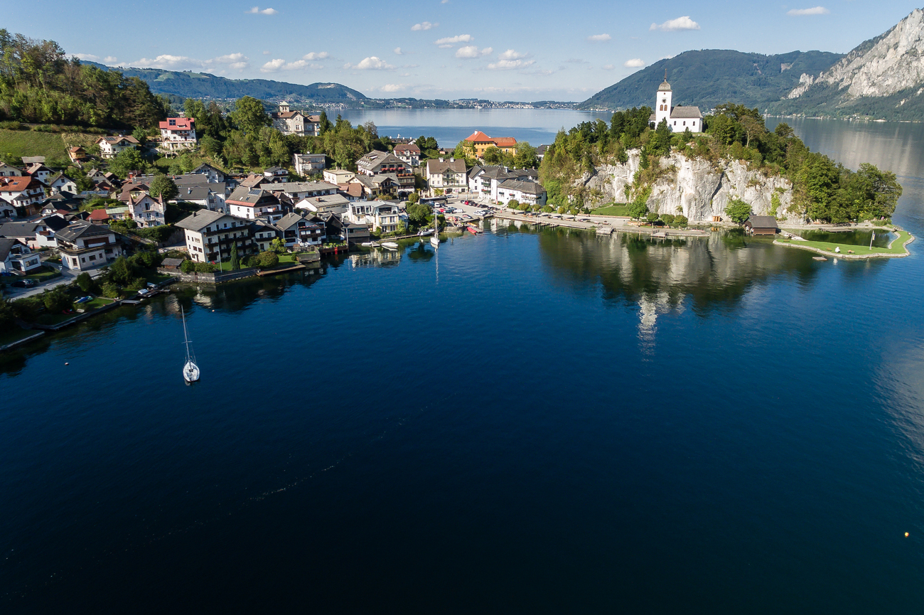 Cinco minutos a pie desde el Bummerlhaus y el paisaje reescribe el guion. Las calles descienden suavemente. El agua empieza a enmarcar la historia.