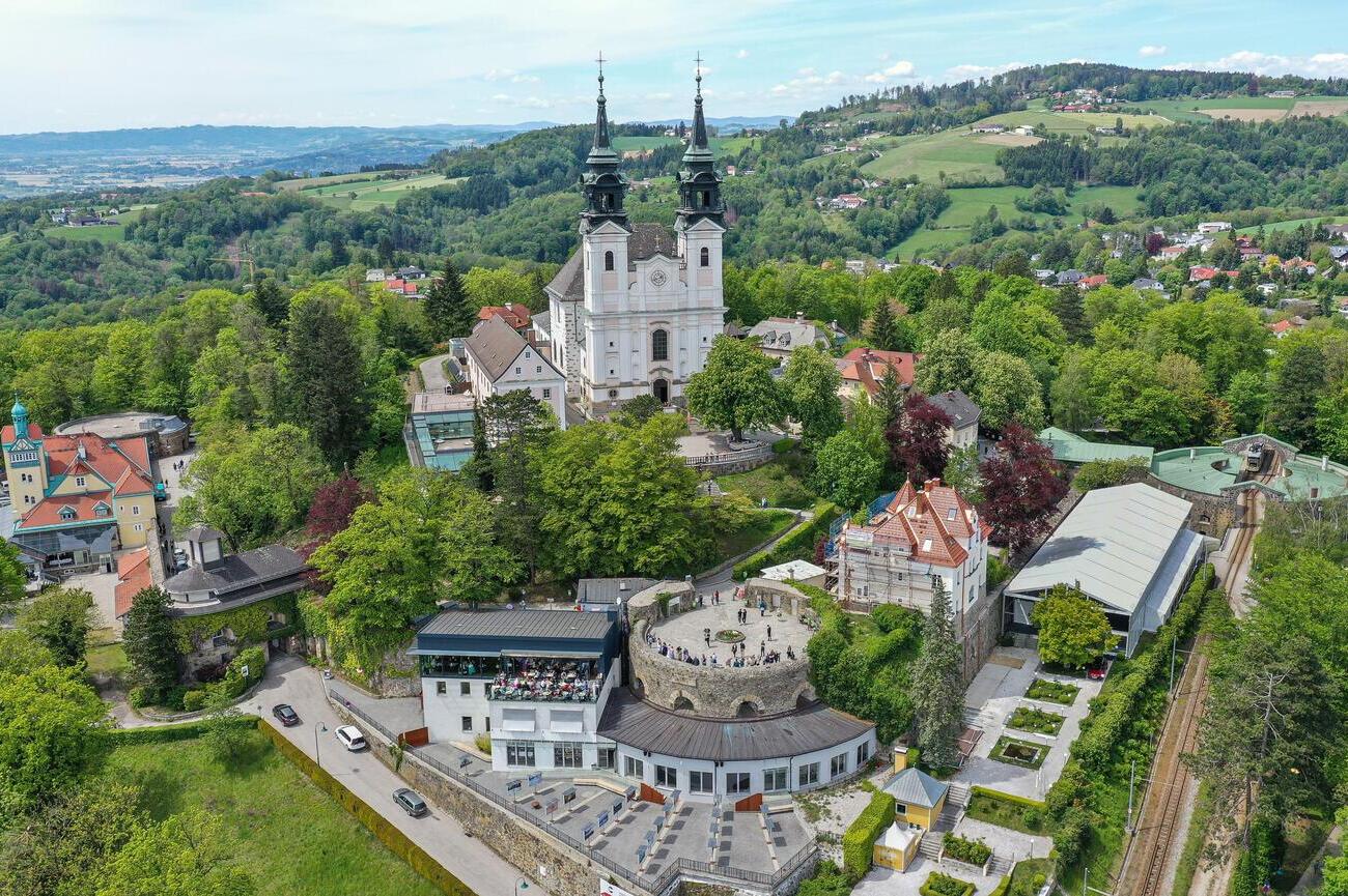 Coronando la cima, la Wallfahrtsbasilika Sieben Schmerzen Mariae ha velado por Linz desde el siglo XVIII. Esta iglesia barroca de peregrinación, dedicada a los Siete Dolores de María, se construyó entre 1742 y 1748 y pronto se convirtió en uno de los lugares de devoción más importantes de Alta Austria. La fachada es elegante, no abrumadora. En el interior, la luz suave, los altares dorados y una ornamentación contenida crean una atmósfera más reflexiva que teatral. La basílica está pensada para detenerse. Incluso quienes no peregrinan suelen bajar el ritmo aquí.
