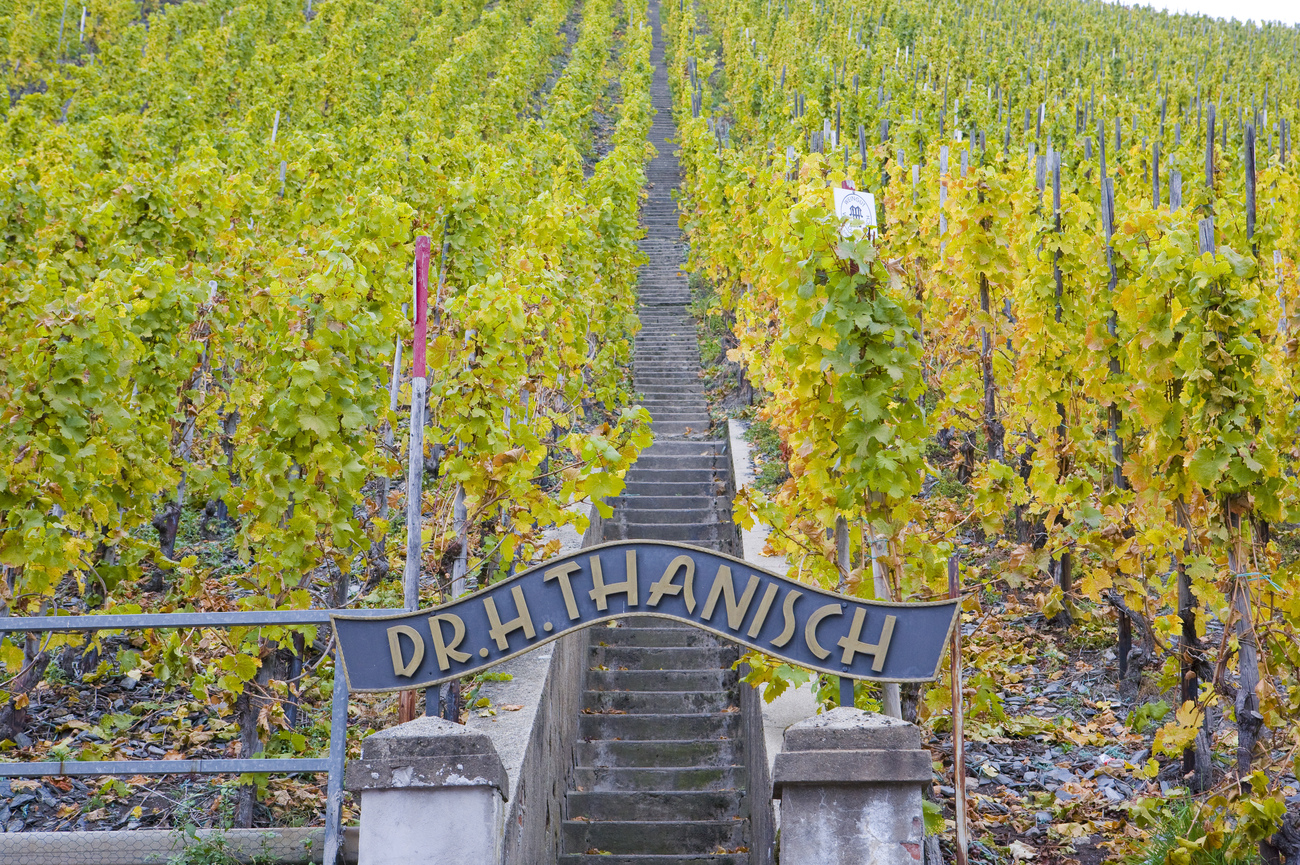 This is one of the valley’s most historically celebrated vineyards, rising to international fame in the 19th century. Its Devonian slate soils hold heat well into the evening, shaping Rieslings known for generous fruit, balance and approachability without losing finesse. Standing here, you feel the difference immediately. The slope is less severe, the atmosphere more open and the river below reflects the last light back onto the vines.