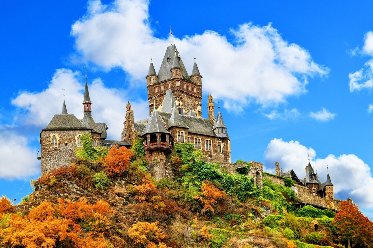 Reichsburg Cochem is pure storybook authority. Originally built in the 11th century, destroyed in the 17th and later rebuilt in the 19th century in Neo-Gothic style, the castle feels theatrical in the best way, with towers, turrets and crenellations rising sharply from the hilltop. Inside, the rooms lean into that theatricality, with ornate halls, carved wood, tapestries, armour displays and sweeping staircases designed to impress guests long before modern tourism existed.
