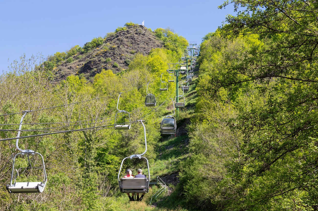 Leaving Cochem behind, you stay loyal to the Mosel, letting the river guide you through sharper bends and narrower stretches. The scenery grows steeper, darker, more intense and after about 25–30 minutes, the landscape signals that you’ve arrived somewhere different. Bremmer Calmont rises abruptly from the river, impossible to ignore.