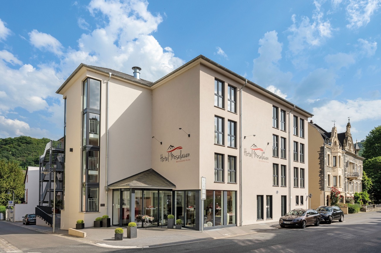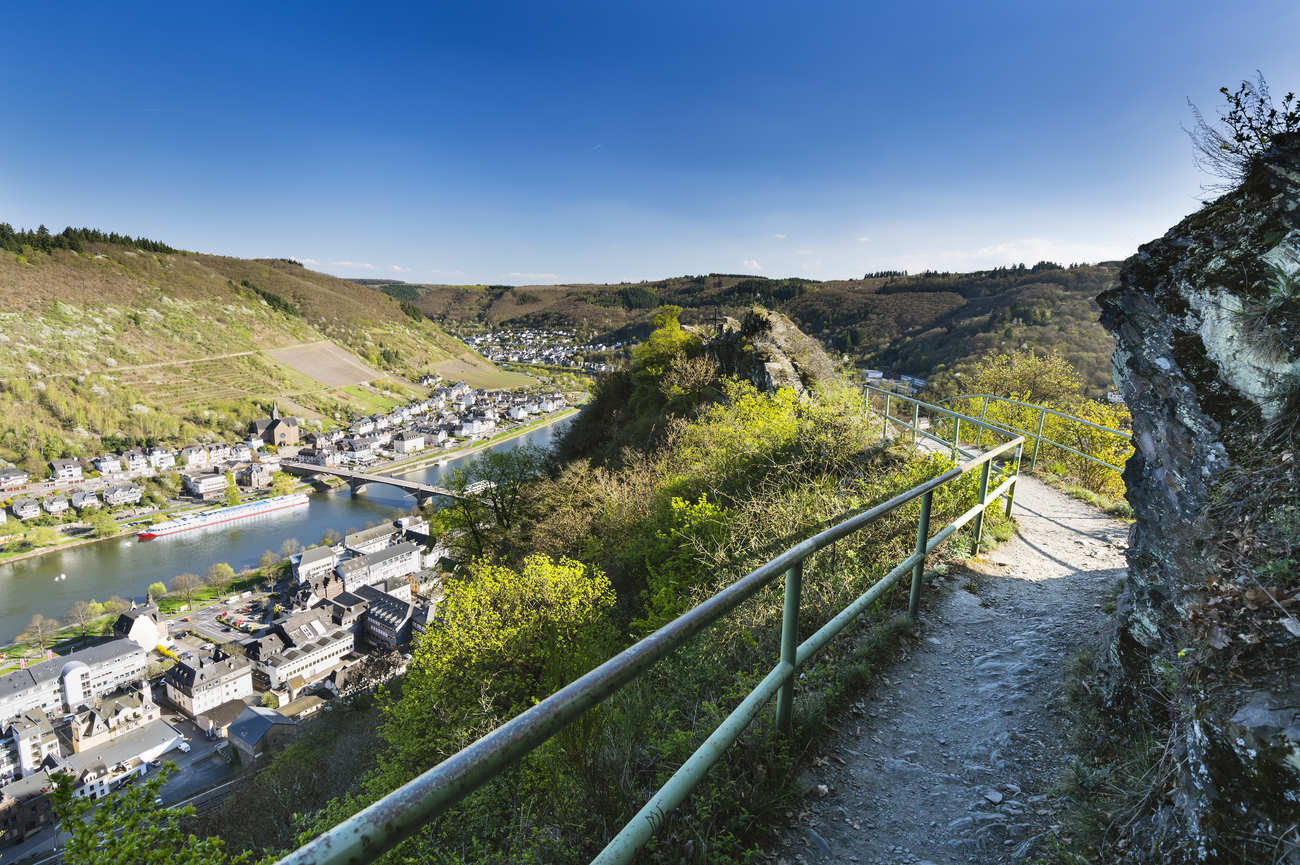 From Burgruine Starkenburg, the descent feels intentional. You leave the hilltop behind, follow the road as it coils gently downward and within about 10–15 minutes, the Mosel pulls you back to river level.