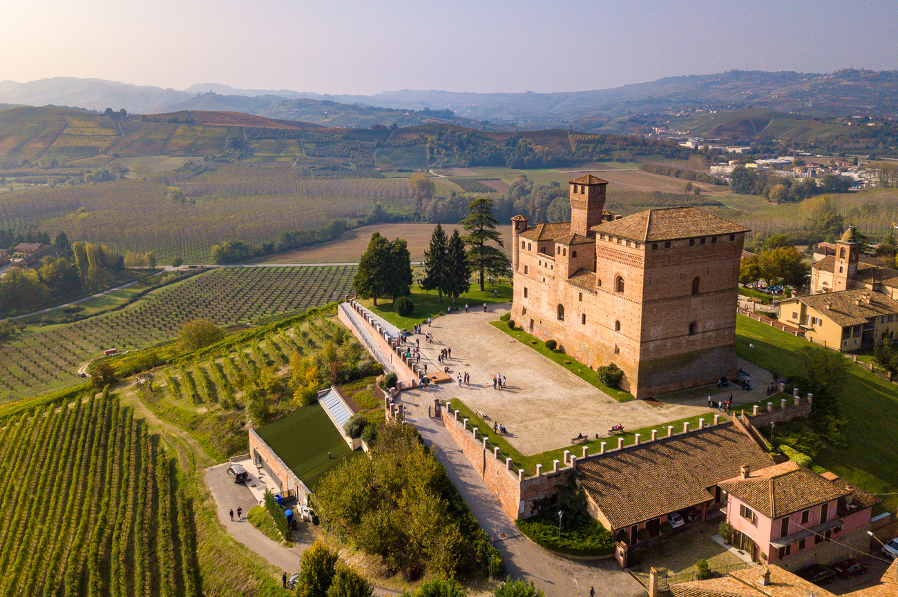 À l’intérieur, le château abrite un musée dédié aux traditions viticoles de la région, ainsi qu’une collection de bouteilles anciennes capables de faire vaciller le cœur de n’importe quel collectionneur. Mais la vraie révélation se trouve à l’extérieur : depuis la terrasse, un panorama à 360 degrés s’étend sur les collines des Langhe, si cinématographique qu’il pourrait servir de plan final à un film récompensé aux Oscars.