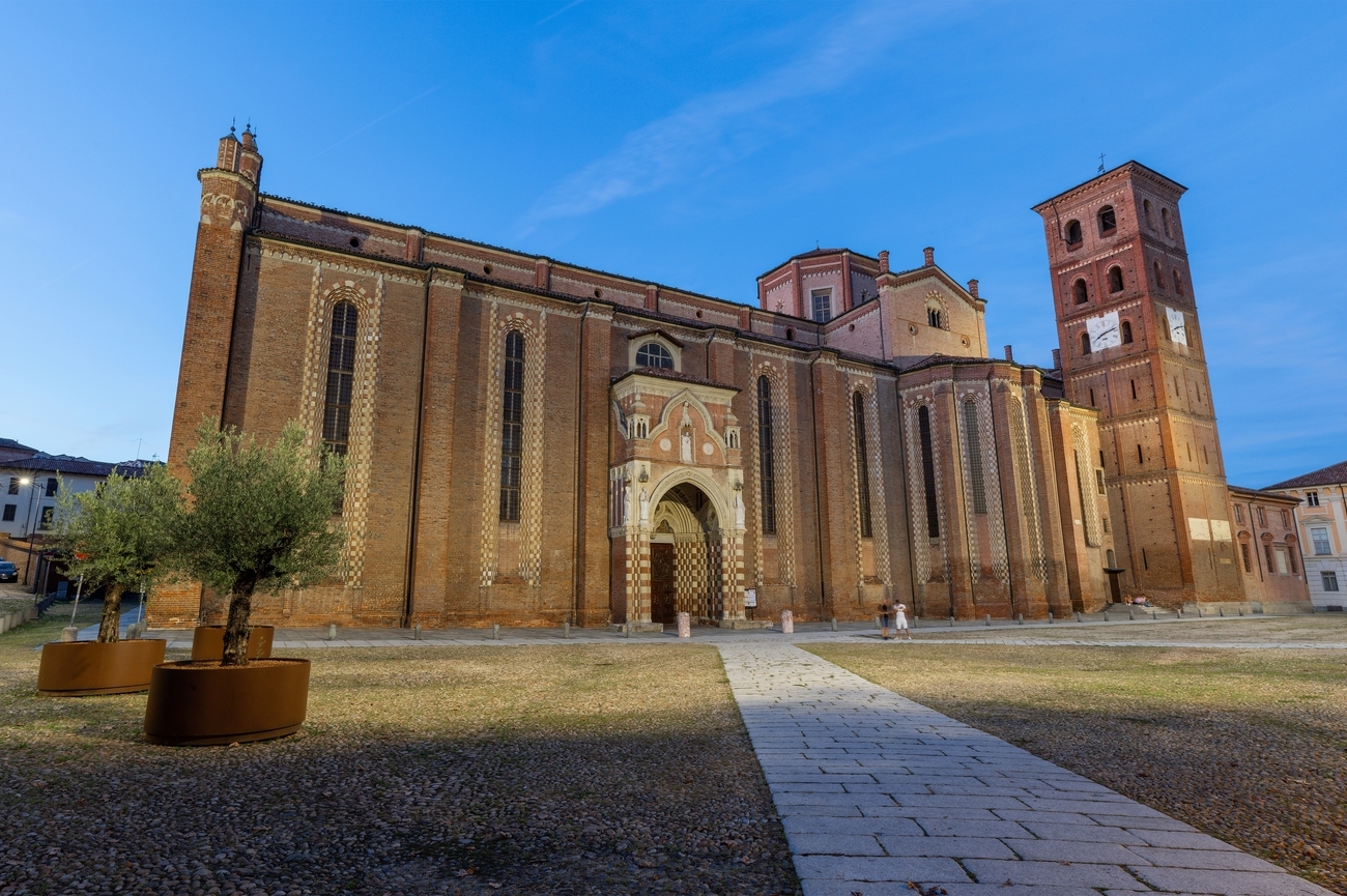 Cette cathédrale n’est pas une simple église pittoresque — c’est un monument majeur de l’architecture religieuse piémontaise. Fondée au XIIᵉ siècle, elle associe la force des briques rouges à la finesse des portails sculptés et à la délicatesse des mosaïques, un ensemble qui fait chavirer les amateurs d’art sacré. À l’intérieur, c’est une véritable symphonie sensorielle : la lumière dorée filtrant à travers les vitraux, les fresques habillant les murs comme des prières murmurées, et la crypte où le poids des siècles semble vibrer dans le silence. Pour une découverte plus approfondie, des visites privées permettent d’explorer certaines zones rarement ouvertes au public.