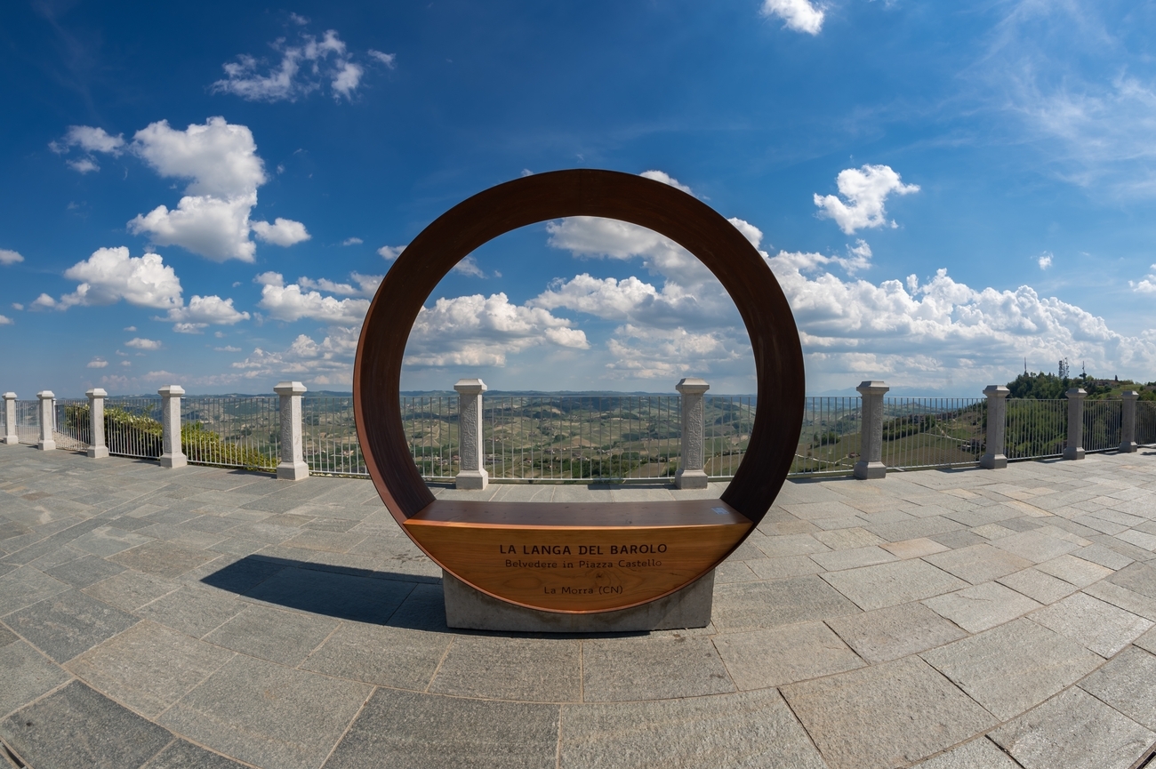 Le Belvédère de La Morra est une terrasse paisible surplombant des rangées parfaites de vignobles, des villages médiévaux nichés entre les collines et, au loin, les Alpes qui veillent majestueusement. L’air est plus pur ici, le rythme plus lent et la vue… disons simplement qu’elle n’a pas besoin de filtre. Ce village perché existe depuis le XIIᵉ siècle, et le panorama suffit à comprendre pourquoi tant de gens ont choisi de ne jamais repartir.