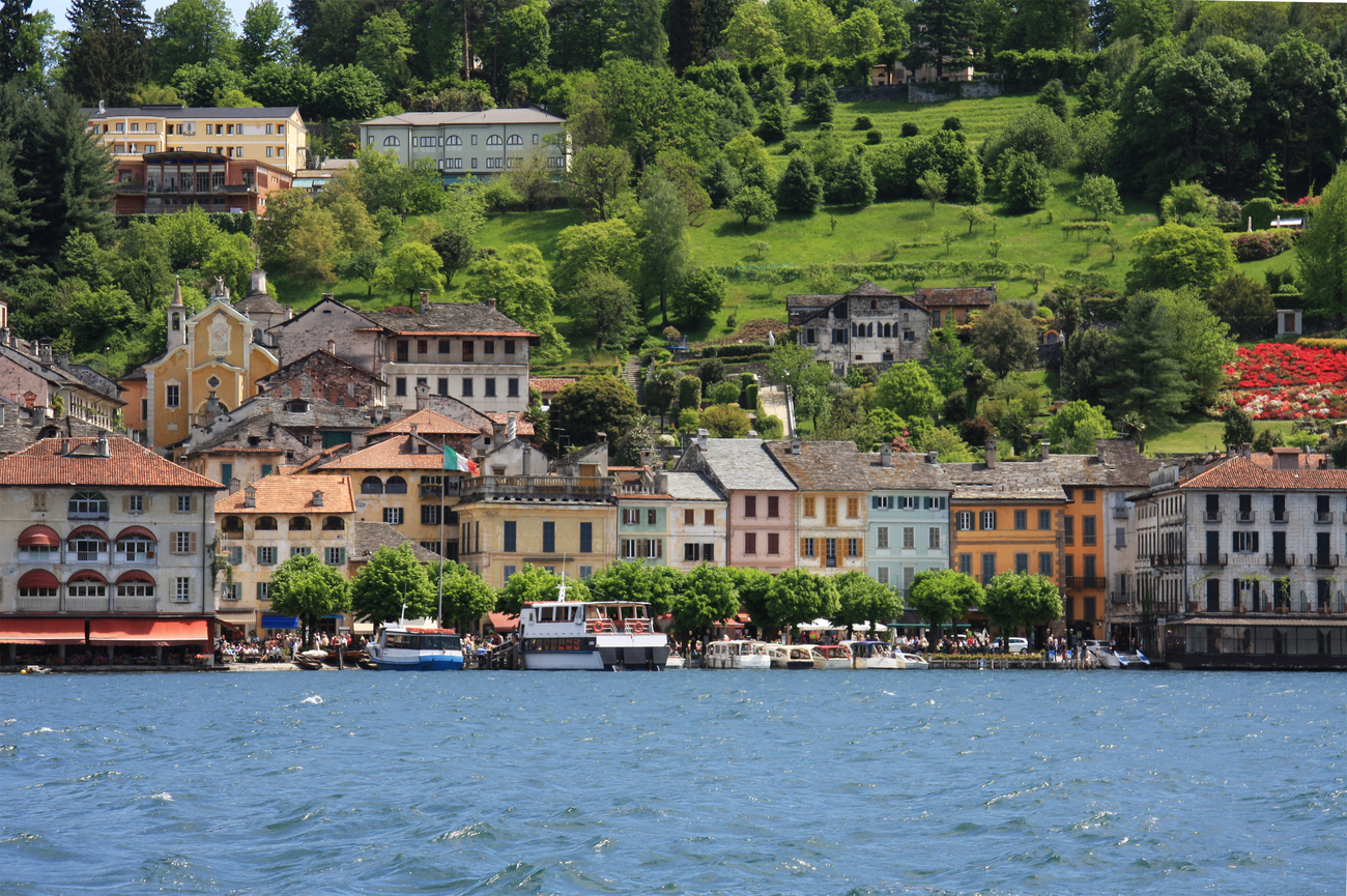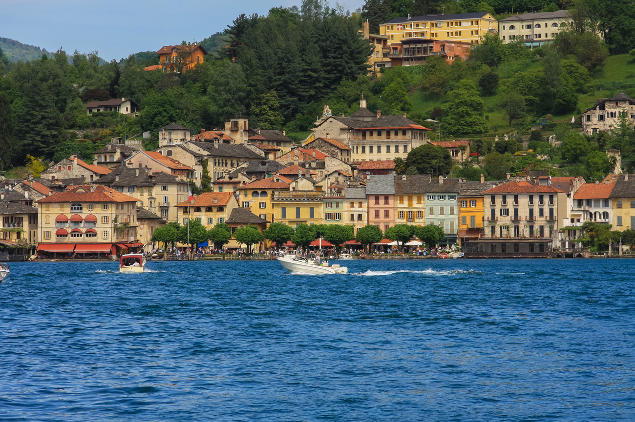Entourée de bâtiments pastel, de boutiques artisanales et de cafés débordant sur les trottoirs, la place vibre d’une énergie à la fois paisible et vivante. En face, l’île San Giulio brille comme un bijou, sa basilique et ses cloîtres se reflétant dans l’eau et créant un décor presque cinématographique. Les balcons en fer forgé, les détails architecturaux subtils et les passages discrets récompensent les regards curieux, transformant une simple promenade en véritable exploration.