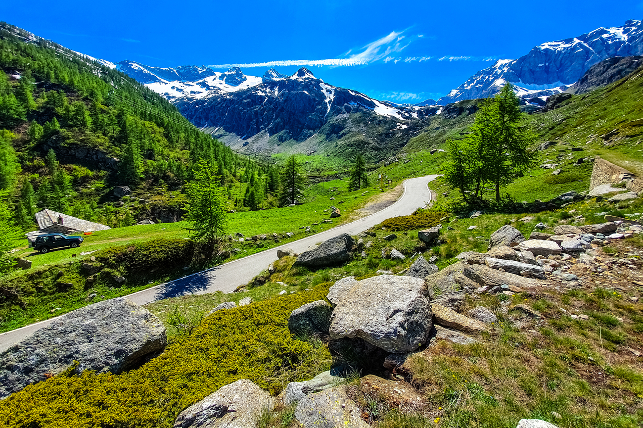 La cinquième journée commence par une bouffée d’air alpin pur à l’entrée du parc national du Grand Paradis, à quelques minutes de route de la ville piémontaise la plus proche. Ici, les vignes et les lacs cèdent rapidement la place aux sommets vertigineux et à une nature sauvage et intacte.