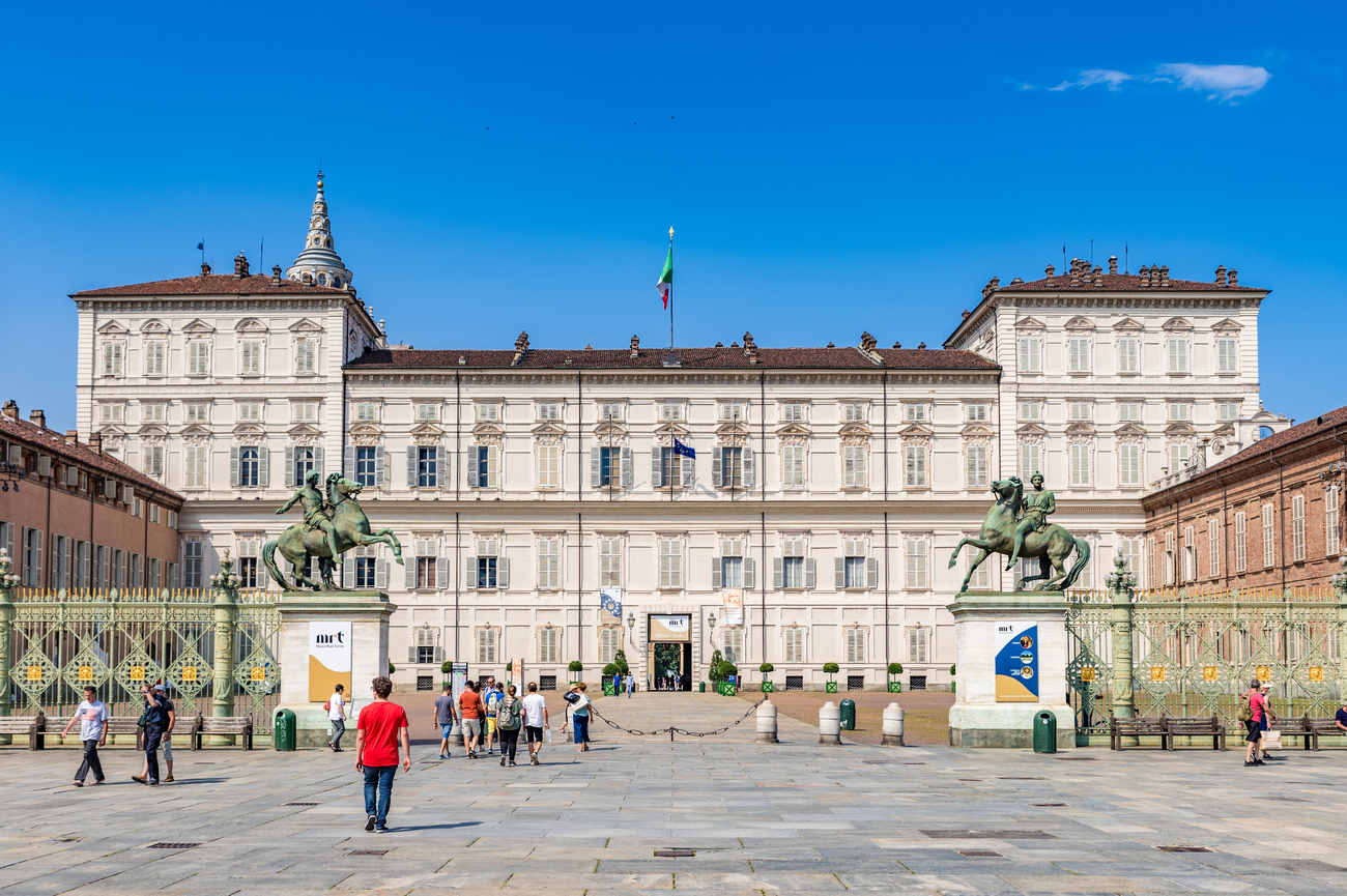 Bonne nouvelle : pas de randonnée, pas de sprint, pas de course folle en taxi. Depuis la Piazza Castello, le Palazzo Reale n’est qu’à une minute de marche. Techniquement, vous êtes déjà en train de le regarder, la famille royale n’était pas vraiment adepte de la discrétion.