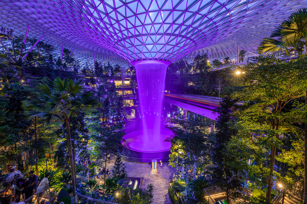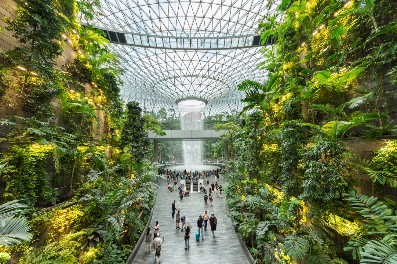 As your journey winds down, head to Jewel Changi Airport. You can do this before catching your flight. Inside, you’ll find the Rain Vortex (the world’s tallest indoor waterfall) cascading through a glass-domed forest. The effect is mesmerising to watch, especially as sunlight filters through the canopy.