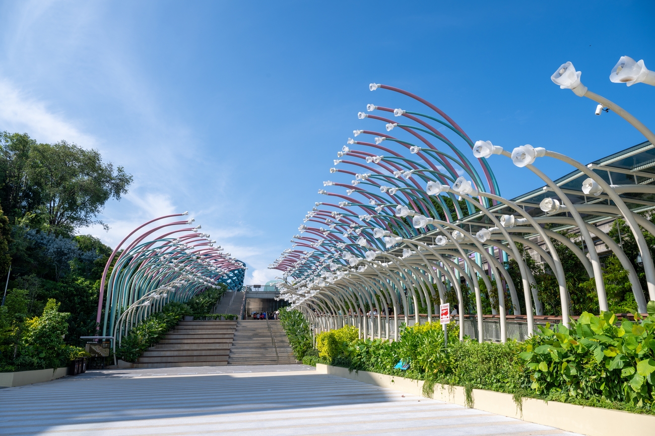 Continue with a stroll through Sentosa Sensoryscape, a landscaped walkway designed to engage sight, sound, and scent. Download the app for a more immersive digital experience of the area. And pause by the water features and sculptural gardens to discover striking photo angles.