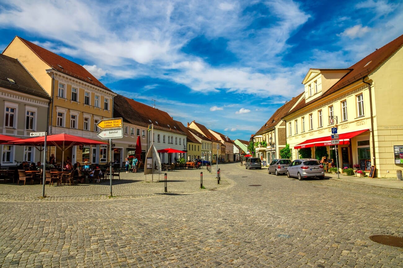 From Großer Spreewaldhafen, it is only a short 5-minute walk into Lübbenau Altstadt, where the atmosphere shifts gently from water to streets, squares and historic facades.