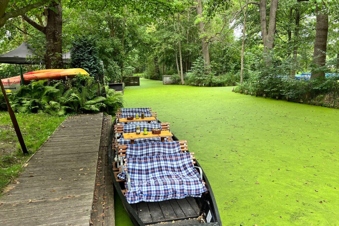 Around 10–15 minutes by boat from Leiper Graben, the setting becomes quieter and more secluded as you approach Wotschofska, one of the more remote stops within the deeper Spreewald waterways.