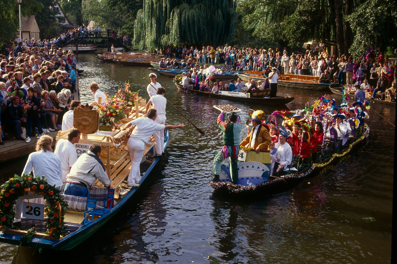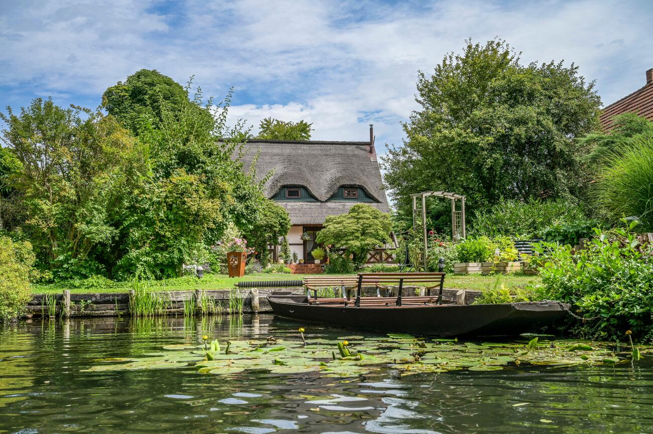 Kahnfahren takes on a different atmosphere later in the day. The canals are quieter, the light softens and the pace feels even more in keeping with the landscape. These traditional flat-bottom boats, known as Kähne, move through the water without engines, guided instead by long wooden poles in a way that reflects centuries of local practice.