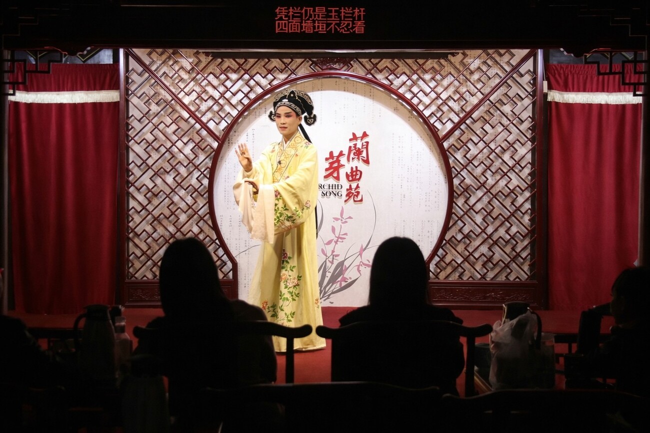 Terminez la journée au Jardin du Maître des filets, le seul grand jardin de Suzhou proposant un programme de spectacles en soirée. C’est le plus petit, et souvent considéré comme le plus raffiné des jardins classés à l’UNESCO, et son plan compact permet de le parcourir confortablement en 45 à 60 minutes maximum. Les spectacles du soir ont lieu de la mi-mars à la mi-novembre. Pendant la visite, vous serez guidé à travers salles et cours, d’un pavillon à l’autre, tandis que de courtes performances se déroulent autour de vous. Chaque arrêt propose une ambiance différente : opéra Kunqu, récits Suzhou pingtan, danse folklorique ou musique douce à la flûte. C’est une expérience intime, au rythme élégant, qui vous fait découvrir la culture vivante de Suzhou dans un décor personnel et presque magique.