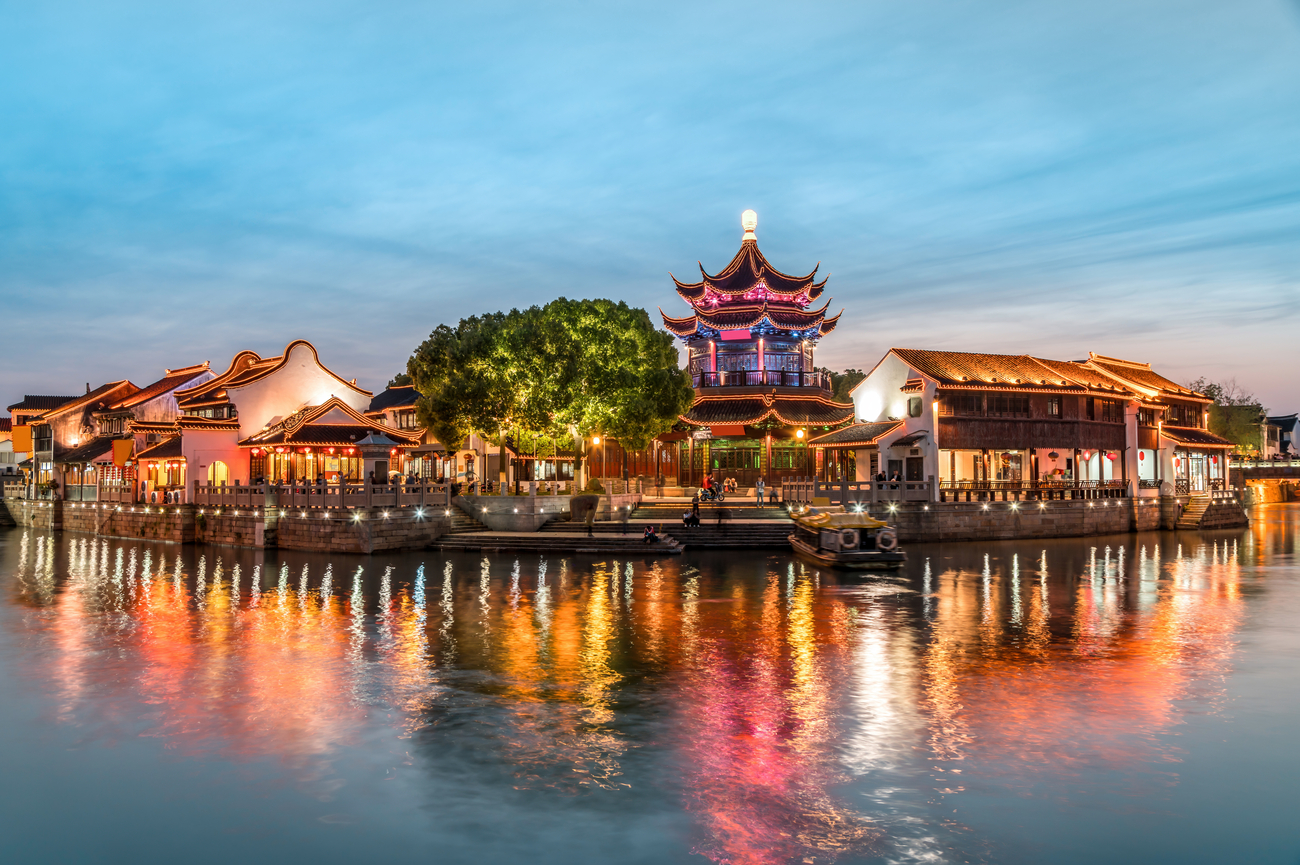 Terminez votre première journée à Suzhou par une promenade relaxante sur la péninsule de Ligongdi, la seule chaussée du lac Jinji. Profitez de la brise légère et des vues spectaculaires sur le Gate of the Orient, surnommé le « Pants building », depuis la promenade au bord de l’eau, ou marchez vers la pagode pour capturer certaines des scènes du soir les plus photographiées de Suzhou. Si l’heure du dîner approche, vous êtes au bon endroit : Ligongdi abrite des adresses réputées comme Deyuelou, célèbre pour ses saveurs classiques de Suzhou, et Su Cheng Jia Yan, restaurant recommandé par le Guide Michelin qui propose une interprétation moderne de la cuisine traditionnelle Jiangzhe.
