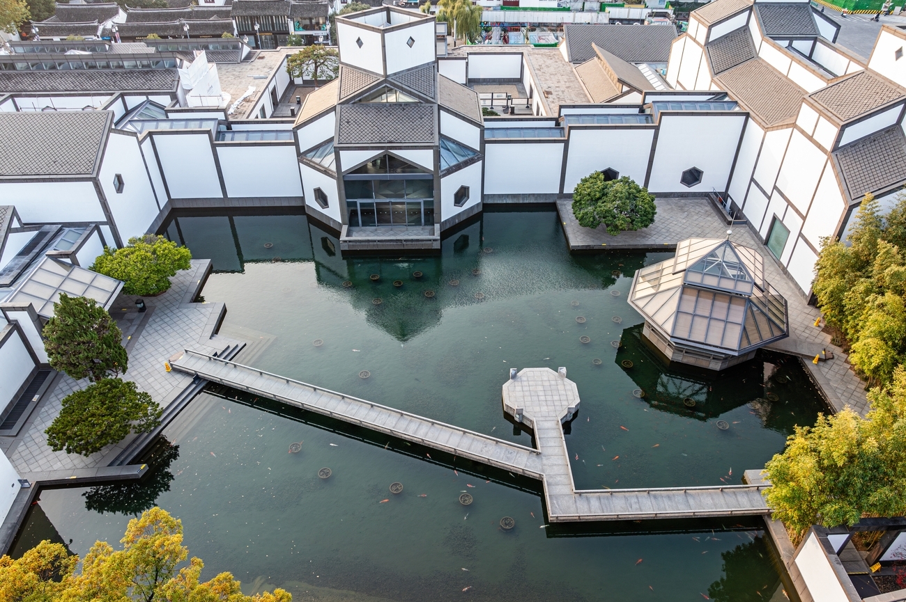À seulement 5 minutes à pied du Jardin de l’Humble Administrateur, le Musée de Suzhou offre une parenthèse élégamment orchestrée entre votre découverte des jardins et l’exploration de la ville. C’est l’une des expériences muséales les plus raffinées de Chine. Le musée se compose de deux sections distinctes : l’ancien musée oriental, installé dans la résidence du prince Zhong, et le nouveau musée occidental, conçu par l’architecte I. M. Pei, lauréat du prix Pritzker, visionnaire à l’origine de la pyramide du Louvre à Paris et l’un des architectes les plus influents du XXe siècle. Le musée abrite plus de 15 000 reliques culturelles, dont de délicates céramiques, des œuvres de calligraphie et des peintures des dynasties Song, Ming et Qing.