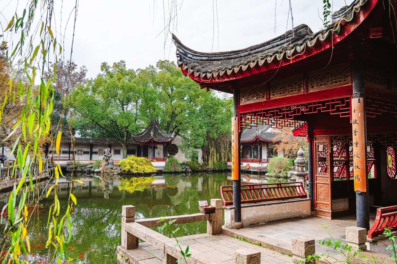 Poursuivez votre journée au Jardin de la Retraite du Couple, un site classé à l’UNESCO à l’histoire intimiste. Construit à la fin du XIXe siècle comme résidence privée du fonctionnaire Shen Bingcheng et de son épouse Yan Yonghua, ce jardin se distingue par son esprit romantique. Contrairement à la plupart des jardins de Suzhou, la résidence occupe le centre, avec un jardin oriental d’un côté et un jardin occidental de l’autre, comme si la maison était maintenue en équilibre. En vous promenant, vous remarquerez comment l’architecture reflète l’amour et la complicité du couple. Le Pavillon de l’Amour était le lieu où Madame Yan jouait du guqin, tandis que le Pavillon de la Mélodie, tout proche, accueillait son mari venu l’écouter, souvenir délicat de moments partagés.
