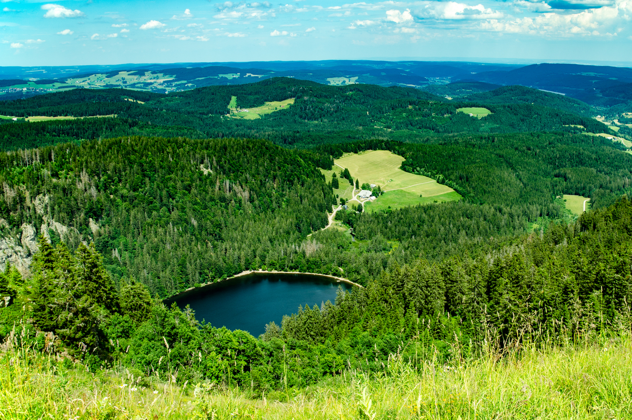 Hornisgrinde rises to 1,164 meters, the highest point in the northern Black Forest. The atmosphere shifts the moment you step out. Forest gives way to open high moorland, the sky feels wider and the wind has a sharper edge. Raised wooden walkways guide you across the protected moor ecosystem, keeping the landscape intact while giving you front-row access to its textures and tones. On clear days, views stretch across the Rhine Valley and even toward the Vosges Mountains in France.