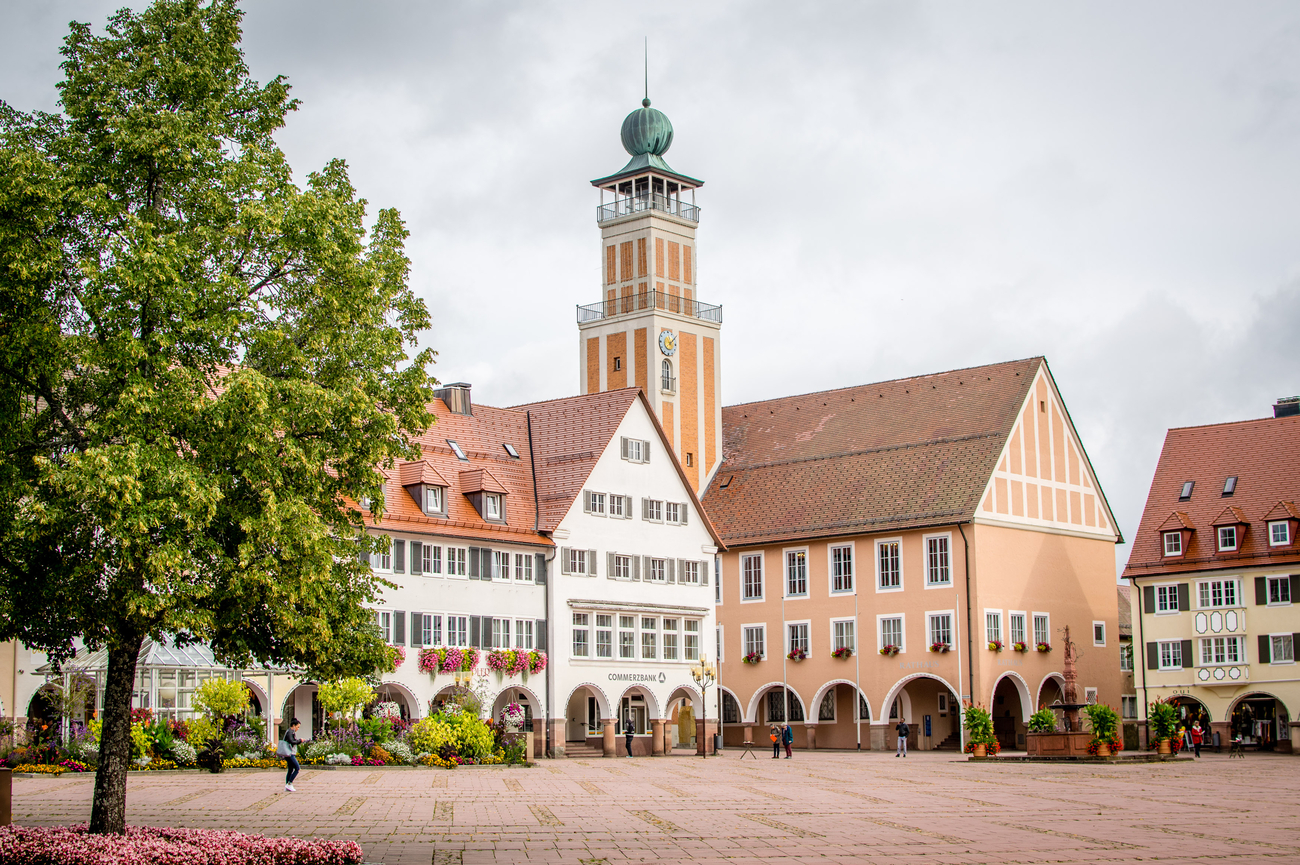After your time at Lotharpfad, continue south and within about 20 minutes, you’ll arrive in Freudenstadt. The road gradually descends from dense woodland into open town streets and then suddenly space. A lot of it. You’ll know you’ve reached Marktplatz when the buildings pull back and one of Germany’s largest market squares opens up in front of you.