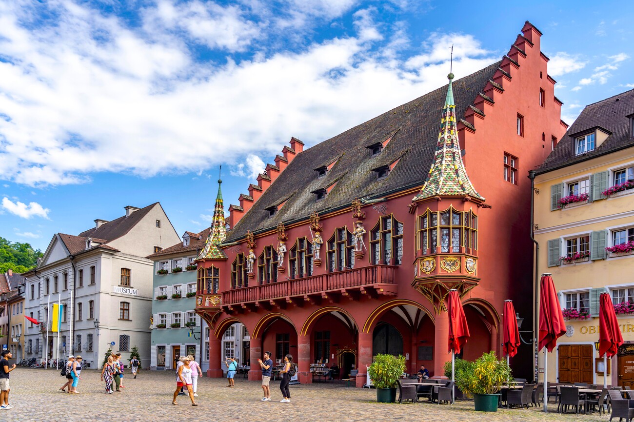 Just a short walk from Münsterplatz, Rathausplatz is Freiburg’s civic heart, a calm, open square framed by the Old Town Hall and the New Town Hall. This is where the city shifts from medieval charm to everyday life: people pause at café terraces, bicycles glide past, and the façades give you a clear sense of Freiburg’s proud, well-run character. Take a moment to look up at the architectural details and enjoy the contrast between the historic buildings and the modern rhythm of the centre before continuing onward.