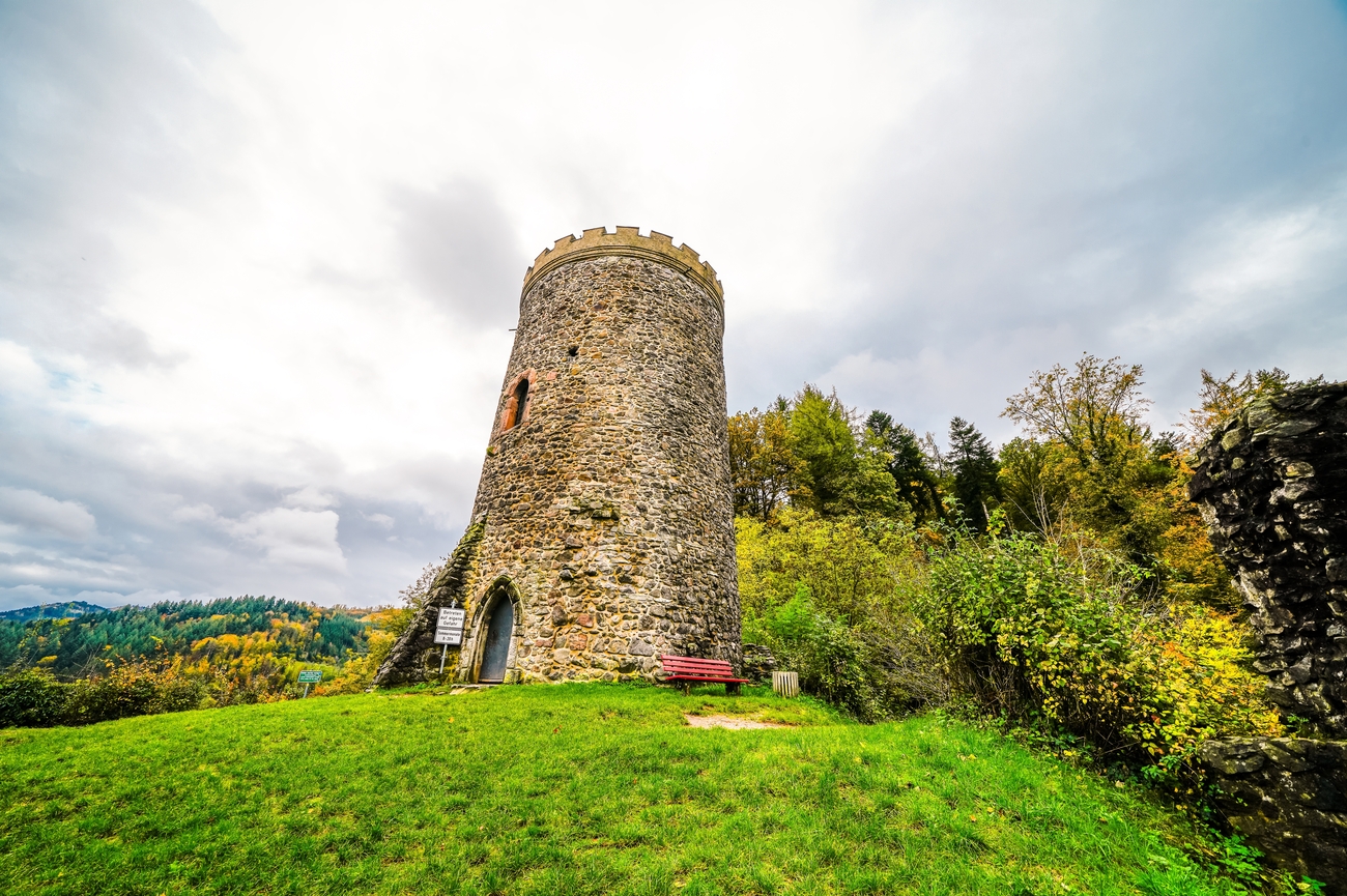 Dating back to the 13th century, Husen Castle once controlled movement through this stretch of the valley. What remains today is a striking ruin: stone curtain walls, open courtyards and a central tower you can still climb. The spiral staircase inside is narrow and medieval in vibe, sturdy shoes recommended, but the summit platform delivers full panoramic payoff. From here, the Kinzig River traces through the valley below, rooftops cluster tightly together and forested hills layer into the distance.