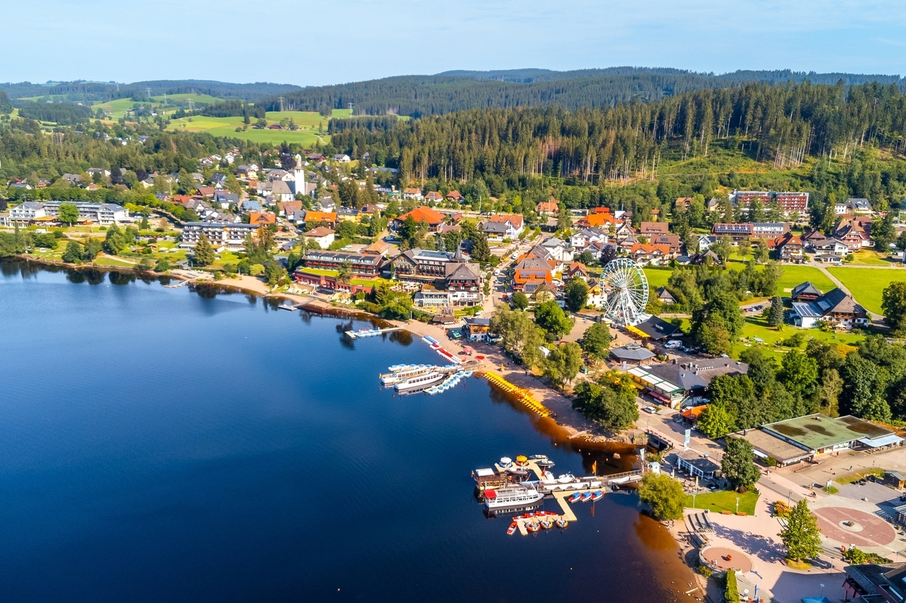 In about 40–45 minutes, forested hills open up and the water of Titisee begins to appear between the trees. Welcome to Titisee-Neustadt.