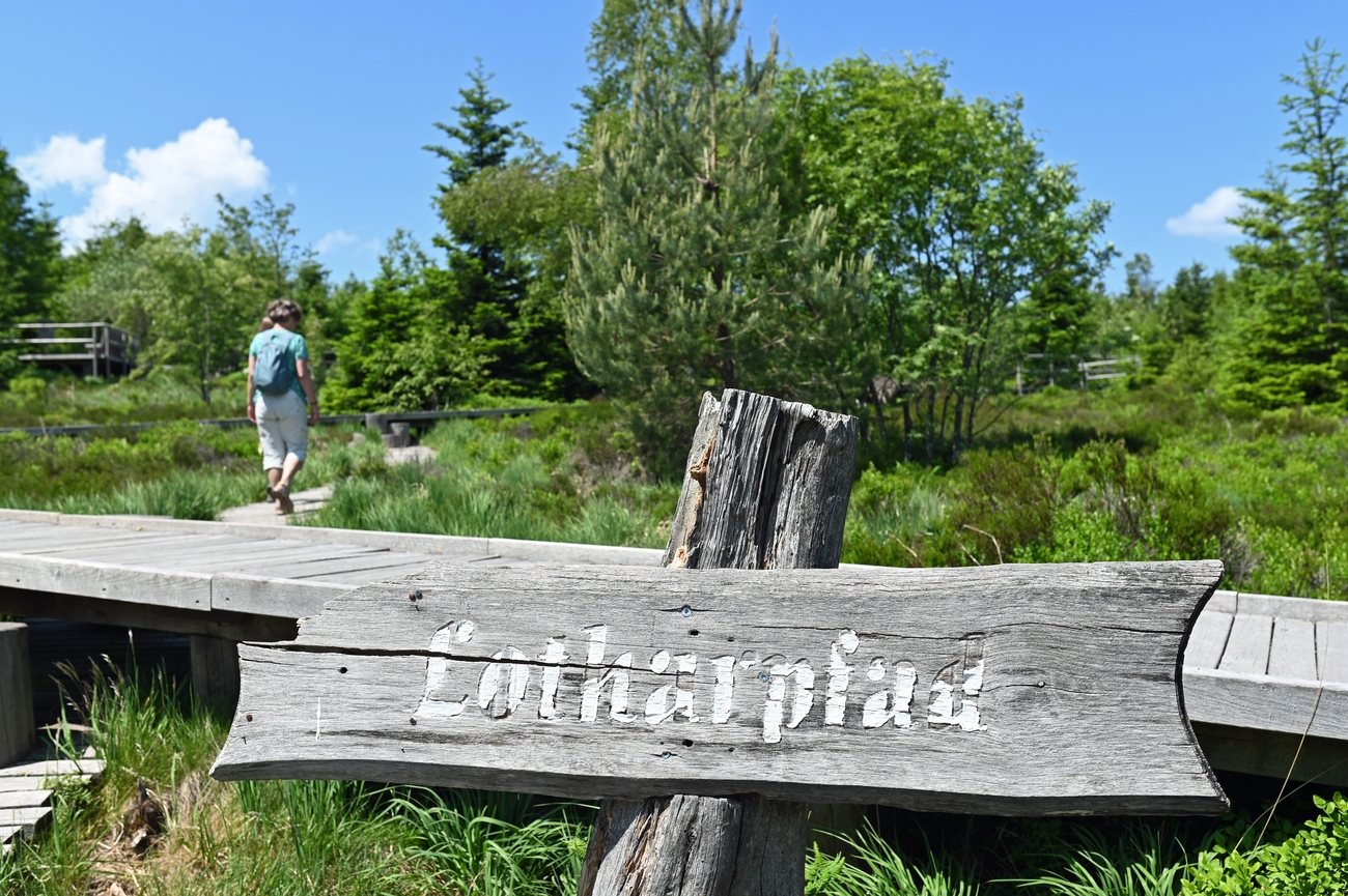 Leave the National Park Center and roll back onto the main road and almost immediately, signs for Lotharpfad appear. Within minutes, you’re pulling into a small roadside parking area tucked into the trees. Step out, follow the wooden trail marker and the forest takes over from there.