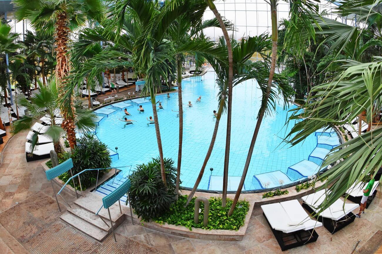 Palais Vital is the refined, 16+ wellness section of Badeparadies, designed for calm over chaos. Inside, you’ll find multiple themed saunas inspired by global spa traditions from Moroccan-style steam baths to Finnish saunas and gemstone-infused relaxation rooms. Warm lagoon pools sit beneath a glass dome, especially atmospheric after dark when the lighting softens and the outside world fades away. Scheduled Aufguss ceremonies take place throughout the evening, where sauna masters elevate the experience with essential oils and heat rituals.