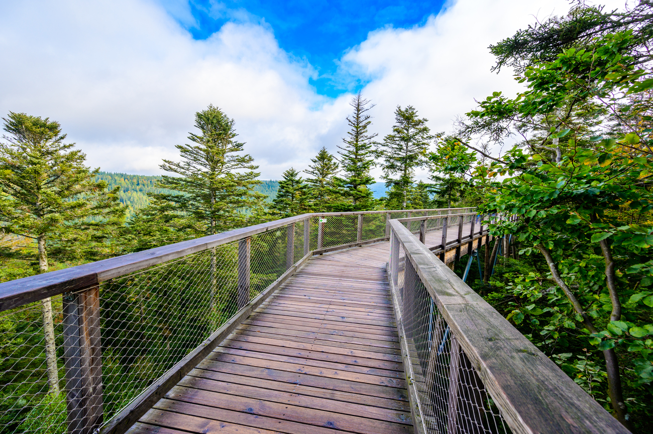 Kniebis has long served as a historic mountain pass, but today it’s all about the vantage points. Several marked pull-offs and trailheads lead to panoramic overlooks where treetops roll endlessly toward the horizon. The Kniebis Panoramaweg is an easy circular path that lets you stretch your legs without committing to a demanding hike. Wide skies, layered ridgelines and uninterrupted forest define the scene.