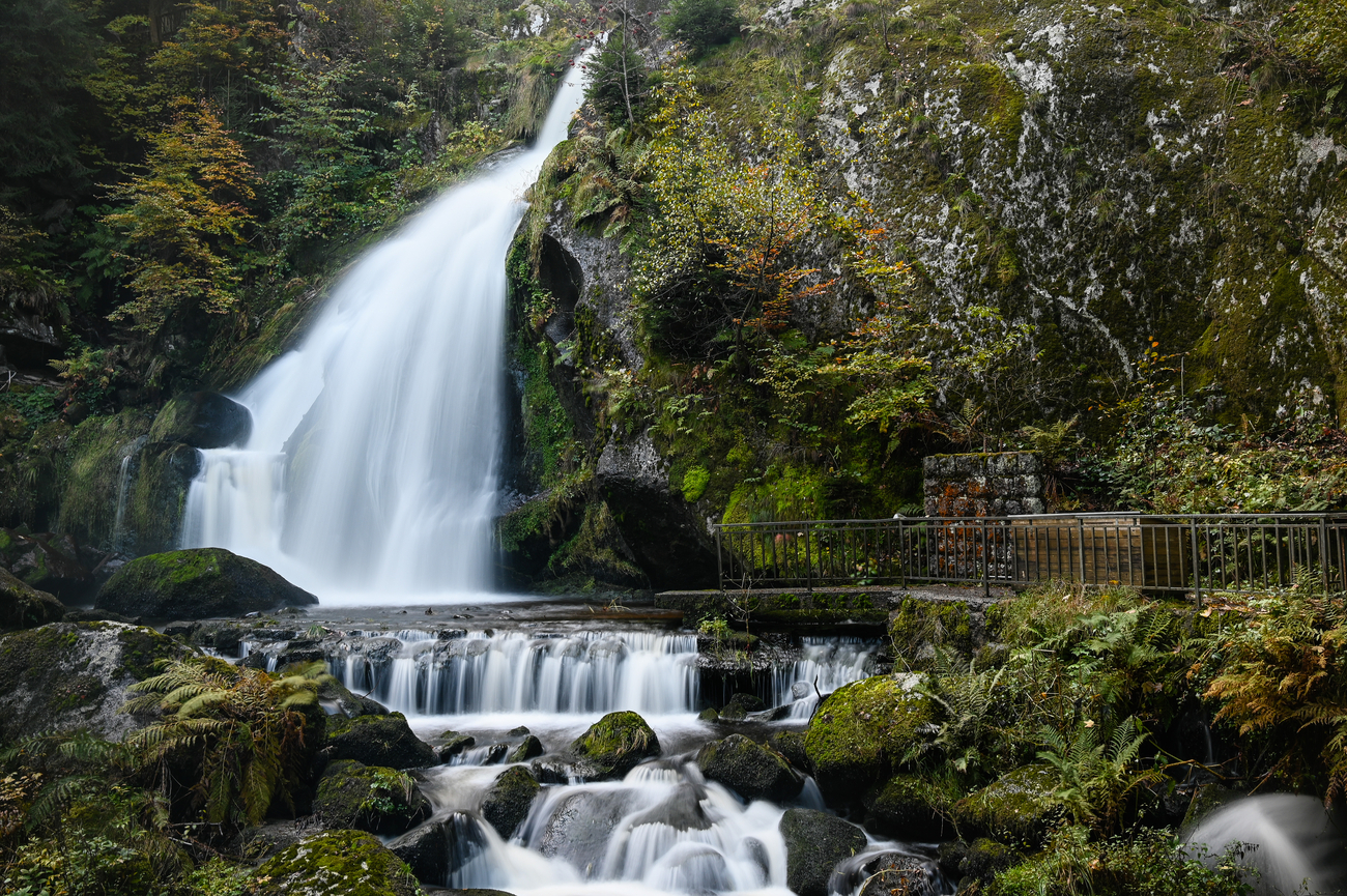 The Triberg Waterfalls (Triberger Wasserfälle) are the highest waterfalls in Germany, cascading a total of 163 meters over seven main drops. The Gutach River tumbles dramatically down through dense woodland, and the sound echoes through the valley long before you reach the entrance. Wooden bridges and well-maintained paths wind alongside the falls, giving you multiple viewing angles from close-up spray moments to elevated panoramic perspectives. The setting feels classic Black Forest: dark evergreens, moss-covered rocks and water that refuses to be subtle.