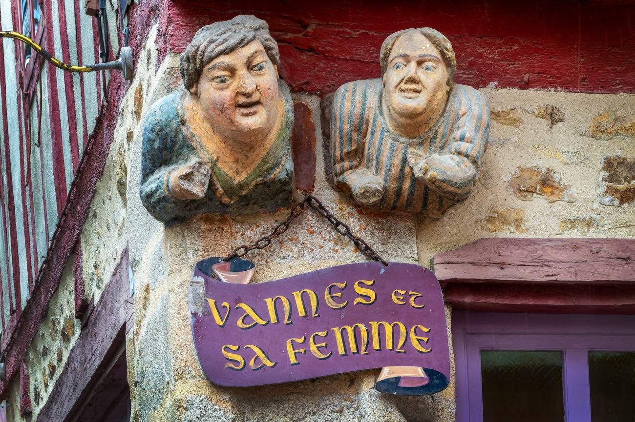 Una de las atracciones más peculiares del casco antiguo es la pequeña escultura Vannes et sa Femme (Vannes y su esposa) que adorna la esquina de una antigua casa con vigas de madera. Esta estatua de granito del siglo XVI con dos caras alegres y regordetas es una de las atracciones más populares de la ciudad y, sin duda, un buen lugar para una o dos fotos dignas de Insta.