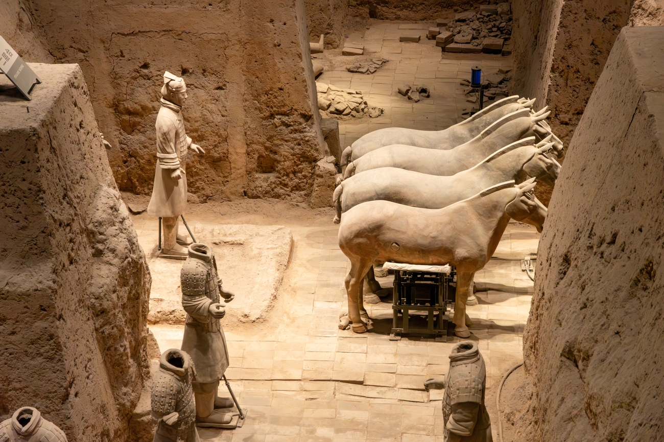 As you walk through the site, you’re not just visiting a museum, you’re stepping into what historians describe as a 2,200 year old “spirit city.” The site remained hidden until 1974, when local farmers accidentally unearthed a terracotta head while digging a well. What followed next became one of the greatest archaeological finds in history. If you look closely, you’ll notice that no two faces of the soldiers are alike, which means each soldier was modeled after real individuals in the Emperor's army.