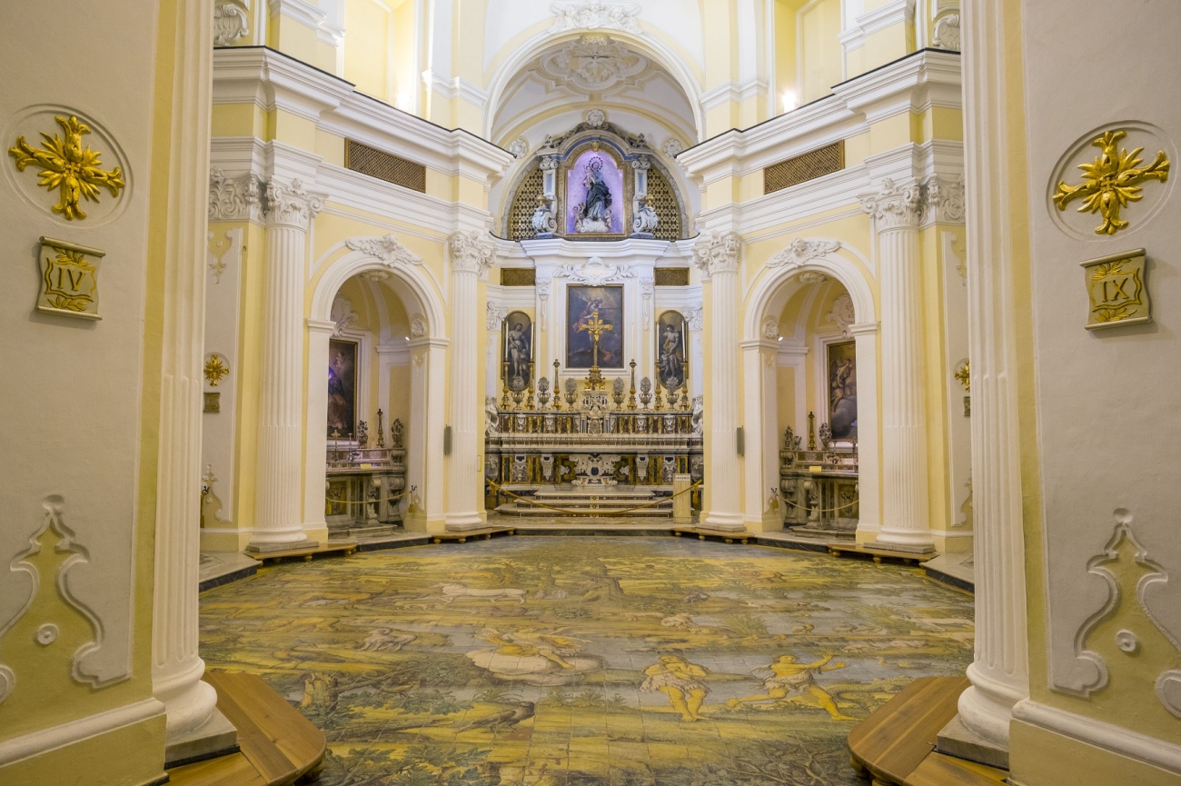Positano Cathedral (Italian: Chiesa di Santa Maria Assunta) with its gleaming majolica-tiled dome has stood majestically above the city since the 10th century. The Medieval crypt below the altar was built in the 12th century using parts of a local 1st-century Roman villa. The main attraction is a Byzantine icon depicting a rare black Madonna supposedly carried to Positano by Saracen pirates.