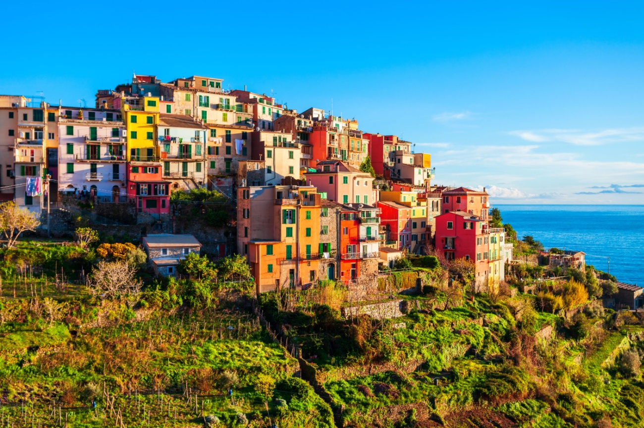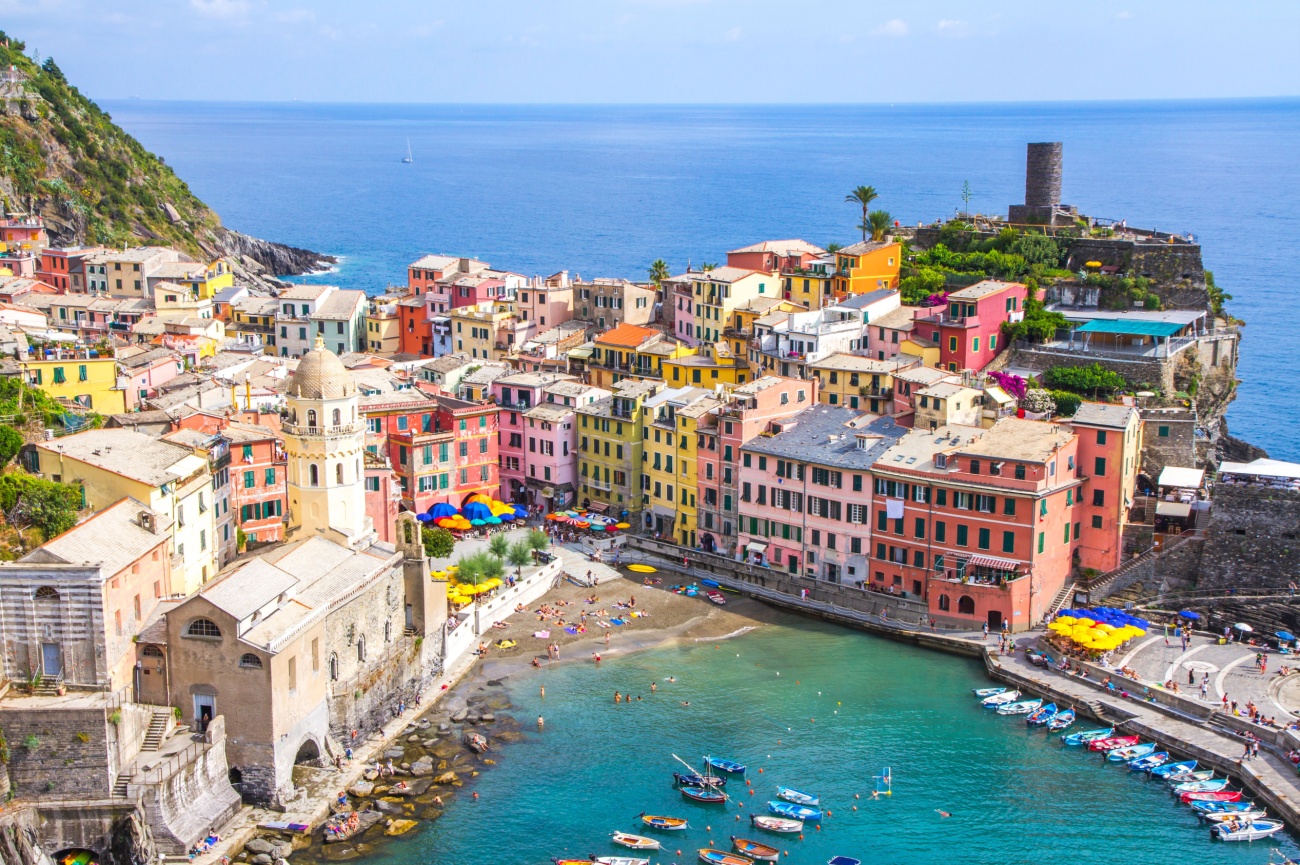 The fairytale village sits on a jagged strip of coastline crowned with a medieval tower. Vernazza is traffic-free and is the only Cinque Terre town with a natural harbour. The old castle has guarded Vernazza since Saracens and pirates terrorized the sea. Climb the steep tower stairs for a bird’s eye view of the coast. The village has great access to trailheads with fabulous scenic overlooks. Brave types can seek out local guides to go cliff-jumping near Vernazza.