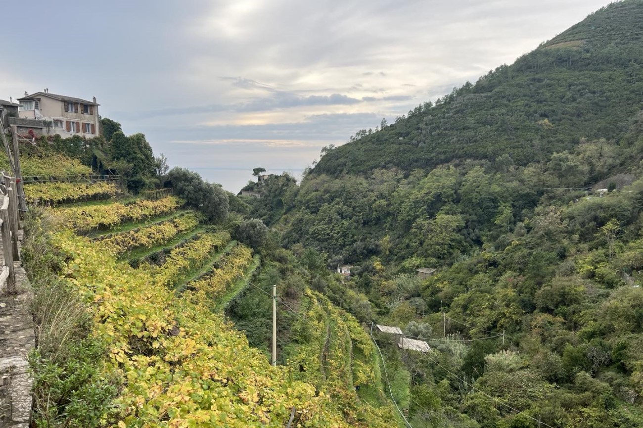 This alternate trail between Manarola and Riomaggiore does not require a Cinque Terre Card, but it does require good physical condition. The villages of Riomaggiore and Manarola are close to one another, but a very steep mountain terrain separates them. Half an hour challenging climb due to the number of steep stairs up over the ridge, through a metal gate as you pass across the high point then drop through terraced small-plot grape fields into a beautiful town for refreshments. The trail offers the absolute best panoramic sea views.