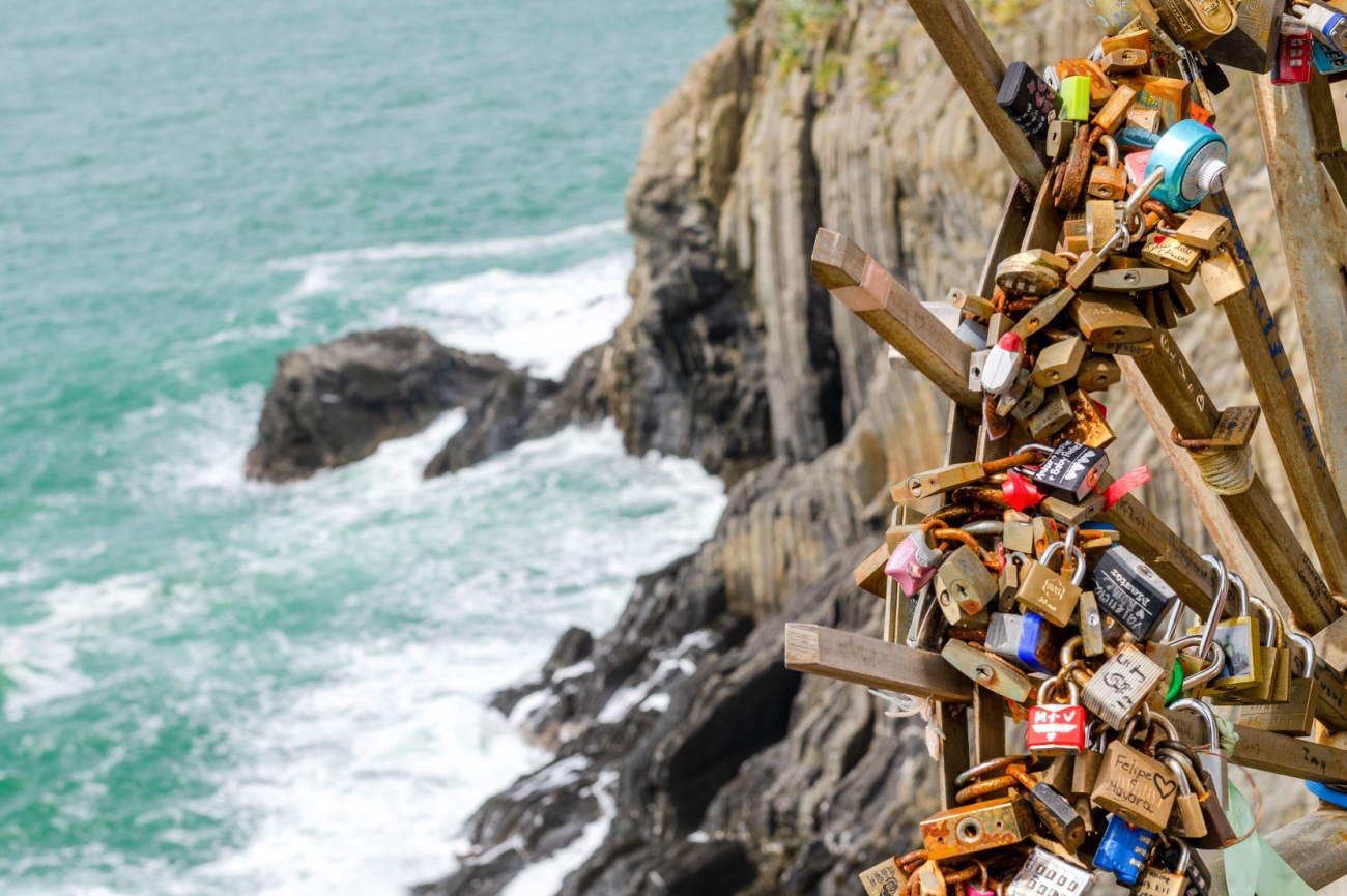 The Via dell'Amore is the most popular stretch of path in the Cinque Terre. The paved trails winds along the coast with parts overhanging the sea. The path requires the Cinque Terre Pass. An alternate, but more difficult route from Manarola to Riomaggiore follows the trail "via Beccara".
