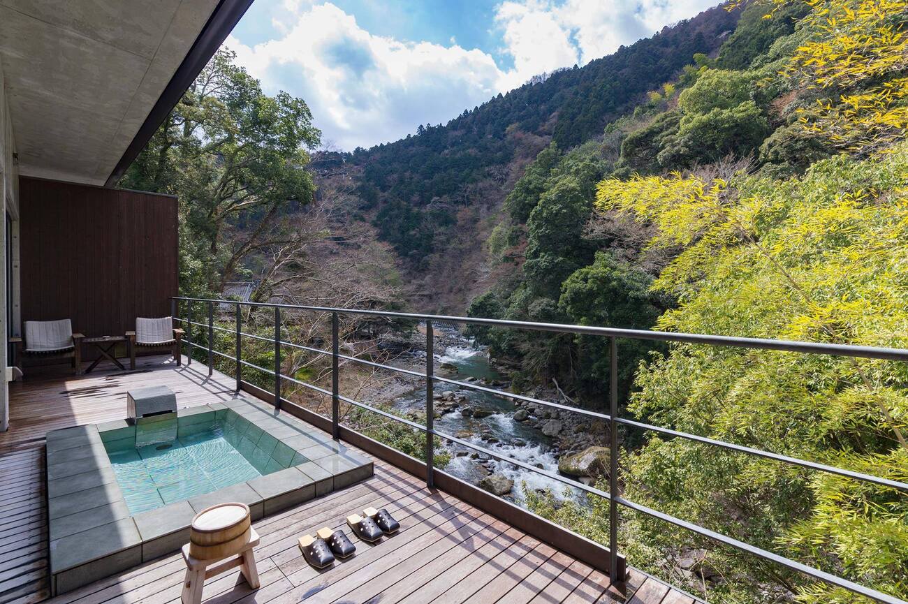 Private open-air baths let you enjoy hot springs without other guests around. Some overlook forests, others rivers, mountains, or the sea. Every view changes with the seasons — rainfall, fog, or falling leaves can make each soak feel different.