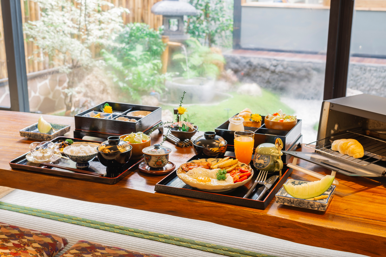You stay in hot springs. You eat meals made with seasonal ingredients. Your room is private and quiet.