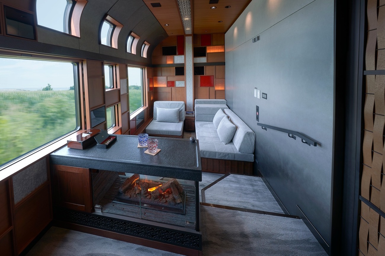 Également situées dans la voiture n° 7, les Suites Deluxe sont légèrement plus compactes, mais tout aussi élégantes. Elles offrent un espace ouvert avec un plafond haut et une cheminée décorative, ainsi que de grandes fenêtres qui invitent à savourer de longues matinées en dégustant un thé tout en contemplant le paysage. La décoration s’inspire de motifs traditionnels japonais et utilise du papier washi, des laques et des pierres pour créer une atmosphère sophistiquée. Elles disposent également d’une baignoire en bois de cyprès.