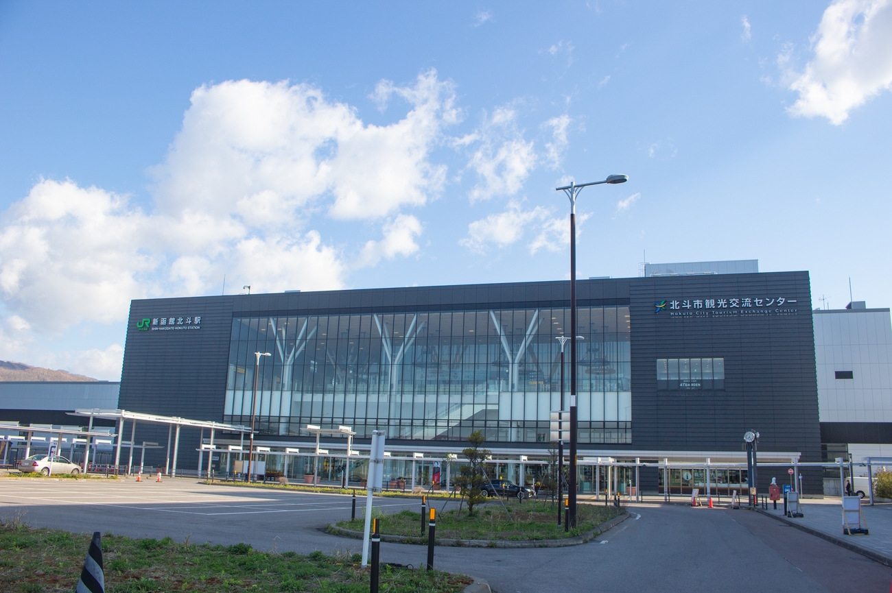 Dans l’après-midi, le train marque un bref arrêt à la gare de Shin-Hakodate-Hokuto avant de poursuivre vers le sud en direction de Honshū.