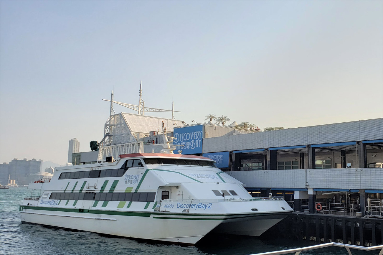 A partir do Central Pier 3, os ferries para Discovery Bay partem a cada 20 a 30 minutos, das 6:00 até à meia-noite, com uma duração aproximada de 25 minutos. Existe também um serviço de autocarro noturno, DB08R, a funcionar da meia-noite até às 06:30. Durante o dia, o shuttle do hotel a partir do Aeroporto Internacional de Hong Kong, DB02R, circula a cada 30 minutos. Em transfer privado, a viagem desde o aeroporto demora menos de 20 minutos.
