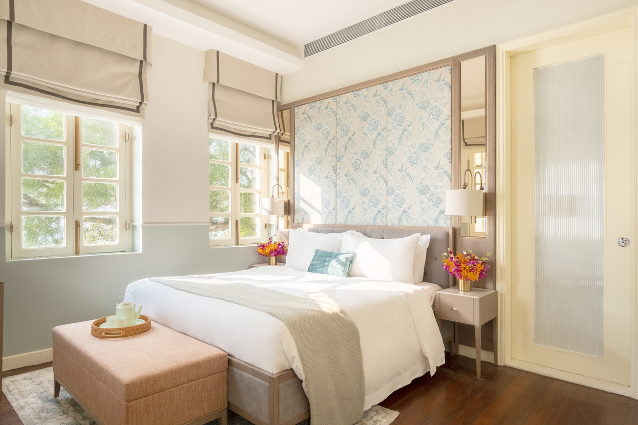 Os quartos são espaçosos por qualquer padrão, não apenas pelos de Hong Kong. Cada um está equipado com máquina de café, zona de estar com sofá, minibar, cofre e uma casa de banho completa com banheira. As portas da era colonial são originais. O pequeno-almoço, um prato composto bastante generoso que os hóspedes descrevem consistentemente como um dos melhores pequenos-almoços de hotel em Hong Kong, está incluído na tarifa e é servido no Tai O Lookout.